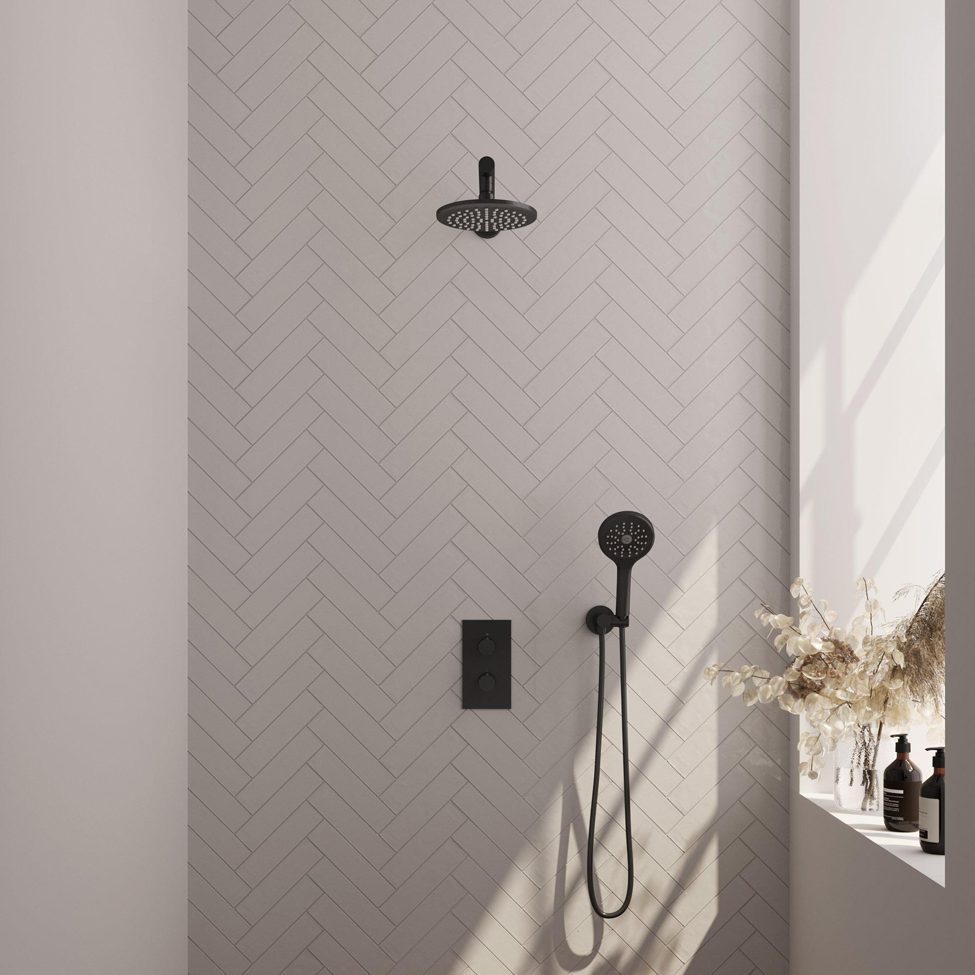 Met de Brauer Black Edition Regendoucheset inbouw voeg je direct een stijlvol element toe aan je badkamer. Het matzwarte design is tijdloos en past perfect bij zowel moderne als klassieke interieurs. De hoofddouche van 20 cm zorgt voor een gelijkmatige waterverdeling, terwijl de handdouche met 3 standen aan al jouw behoeften voldoet. De gladde knoppen maken de bediening eenvoudig en elegant.