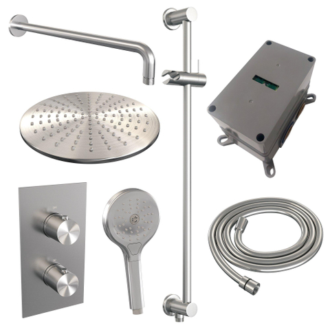 Brauer Brushed Edition Regendoucheset inbouw - hoofddouche 30cm - Gladde knop - handdouche rond 3 standen - glijstang - PVD - geborsteld RVS