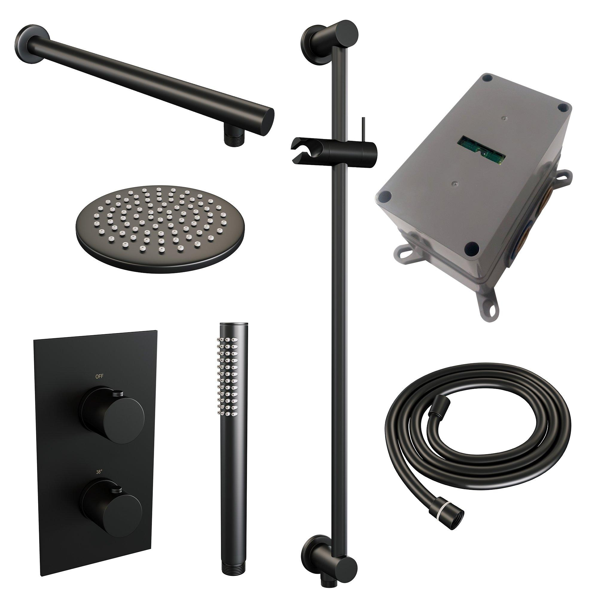 Brauer Black Edition 2 functies thermostatische inbouw doucheset met omstel inbouwdeel 20cm hoofddouche rechte wandarm glijstang staafhanddouche zwart mat