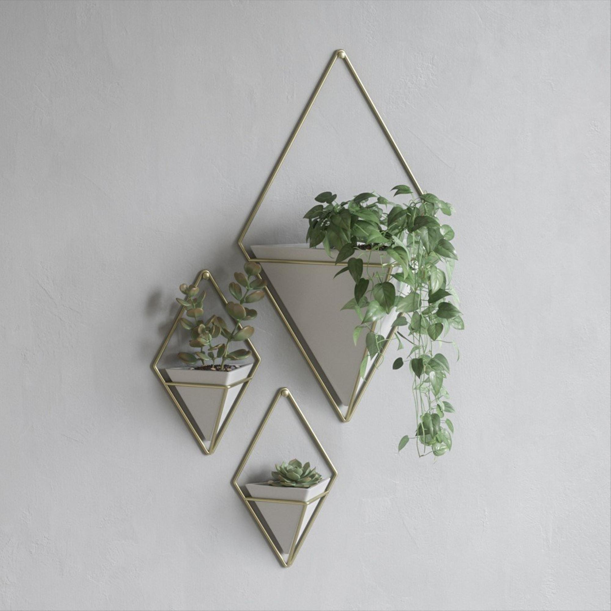 Heb je het idee dat je muren wel wat decoratie kunnen gebruiken? Een nieuwe impuls die een ruimte mooier maakt? Met deze geometrische wandhouder van Umbra geef je je kantoor, keuken of woonkamer persoonlijkheid. Je kunt de Trigg gebruiken als plantenbak om je kamer groener en levendiger te maken, op een stijlvolle, onverwachte manier.