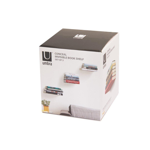 Umbra Conceal boekenrek 13x14x14cm S zwevend 3 stuks staal zilver