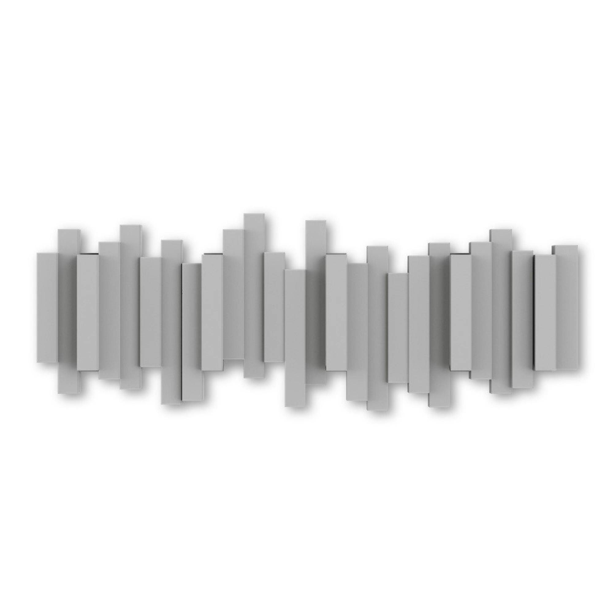 Uniek en sterkDoor het bedrieglijke, levendige ontwerp lijkt de Sticks in eerste instantie moderne kunst aan de muur te zijn, tot je ziet dat sommige "stokjes" omlaag kunnen kantelen en haakjes worden waar je iets aan kunt hangen.