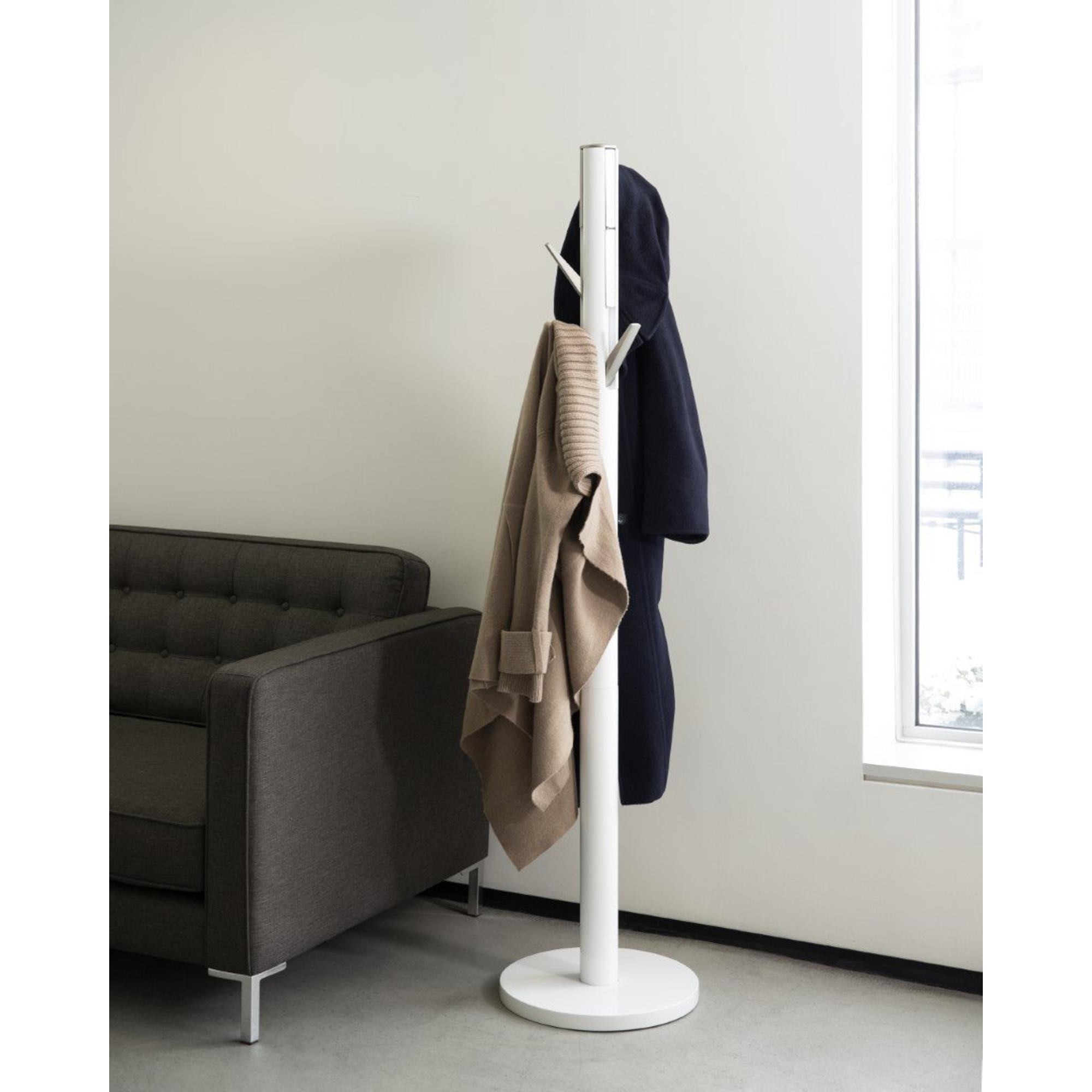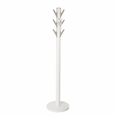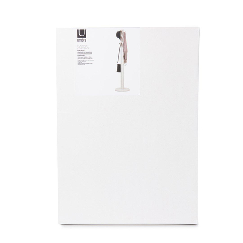 Een compacte kapstokDe Flapper is een kapstok met een slank design; hij heeft een diameter van 39,3 cm en een hoogte van 165 cm en is verkrijgbaar in de kleuren wit, zwart/walnoot en wit/naturel.