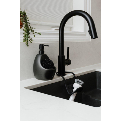 Een makkelijke 2-in-1-oplossingDe Joey-zeepdispenser voor de keuken is de ideale 2-in-1-oplossing voor bij de gootsteen; de ingebouwde houder zorgt dat je favoriete keukenhulpmiddelen zoals de schuurspons (inbegrepen) en de keukenspons netjes op hun plek blijven en dat je er makkelijk bij kunt.