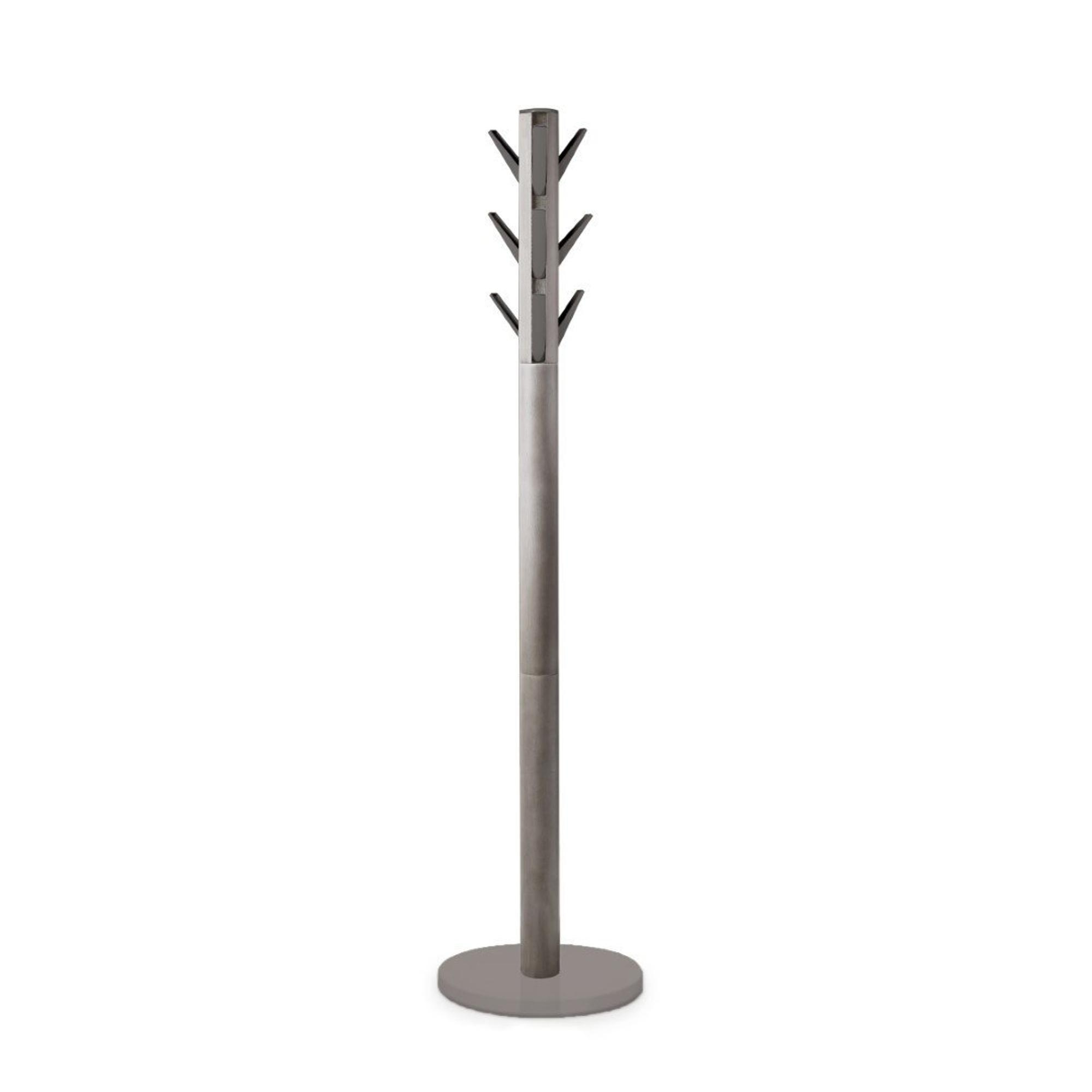 Een compacte kapstokDe Flapper is een kapstok met een slank design; hij heeft een diameter van 39,3 cm en een hoogte van 165 cm en is verkrijgbaar in de kleuren wit, zwart/walnoot en wit/naturel.