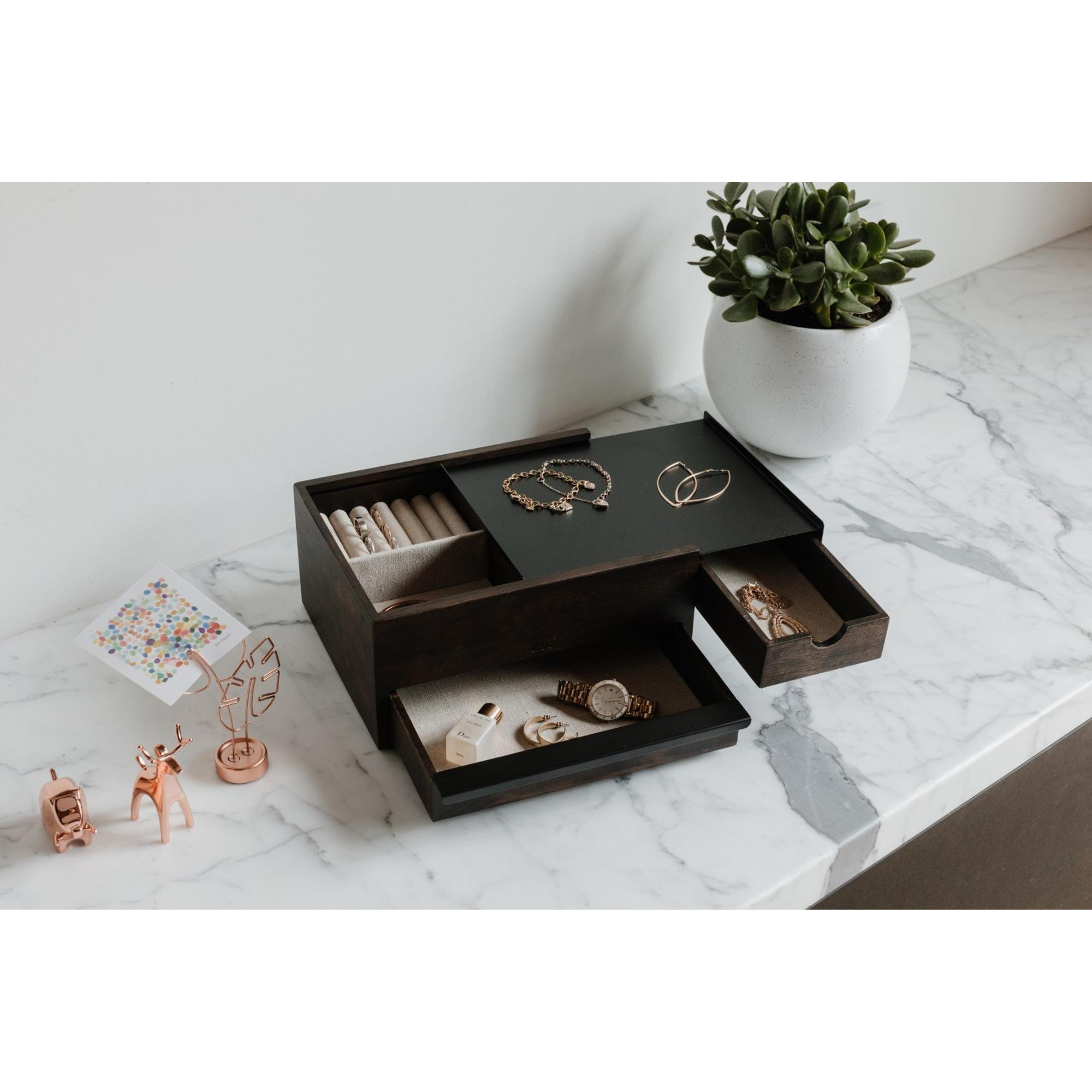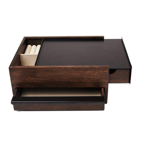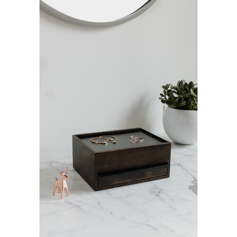 Umbra Stowit opbergbox 26x22x12cm Rubberhout Zwart/walnoot