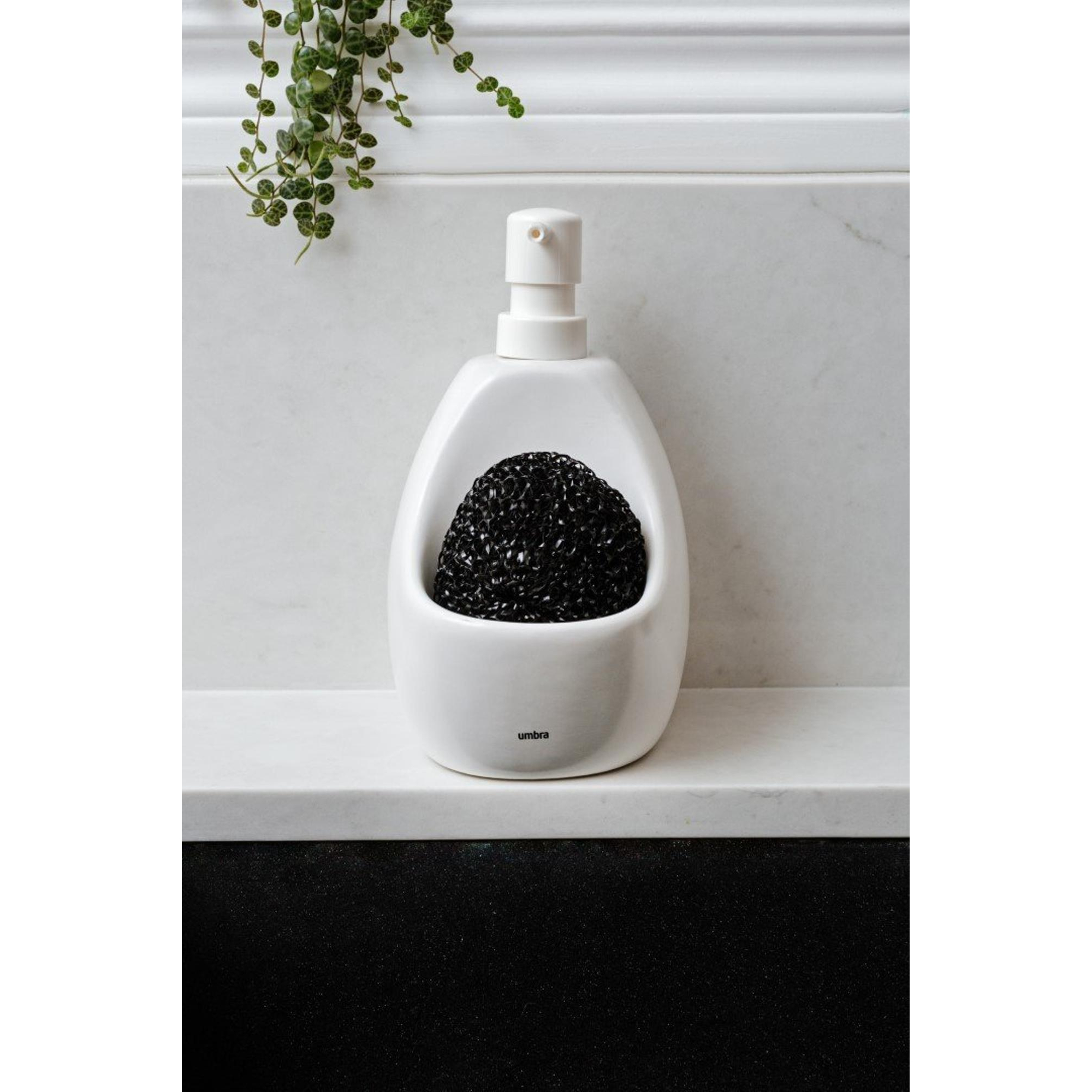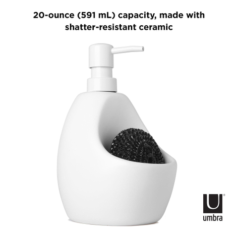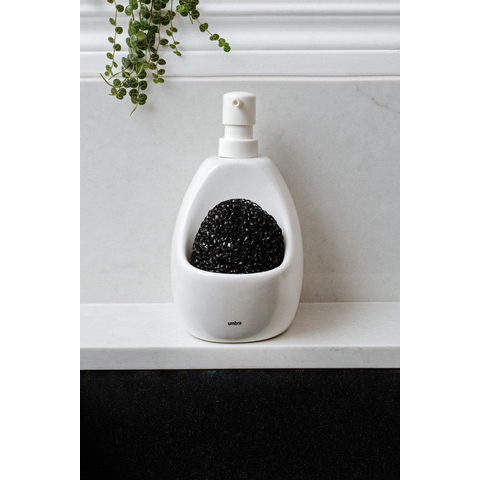 Eenvoudig te gebruiken met één hand De Joey-zeepdispenser met sponshouder is gemaakt van matte keramiek met een moderne look; dankzij het robuuste en zware materiaal kun je hem heel makkelijk met één hand gebruiken zonder hem te verplaatsen of om te gooien.