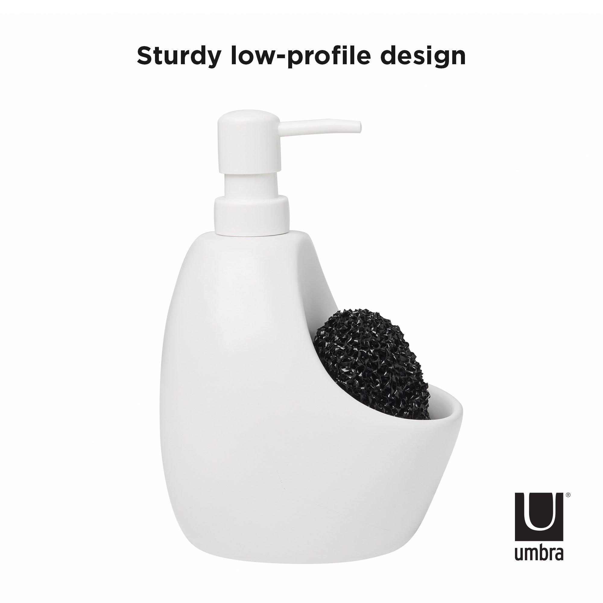 Een makkelijke 2-in-1-oplossingDe Joey-zeepdispenser voor de keuken is de ideale 2-in-1-oplossing voor bij de gootsteen; de ingebouwde houder zorgt dat je favoriete keukenhulpmiddelen zoals de schuurspons (inbegrepen) en de keukenspons netjes op hun plek blijven en dat je er makkelijk bij kunt.