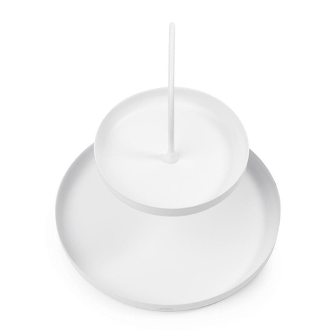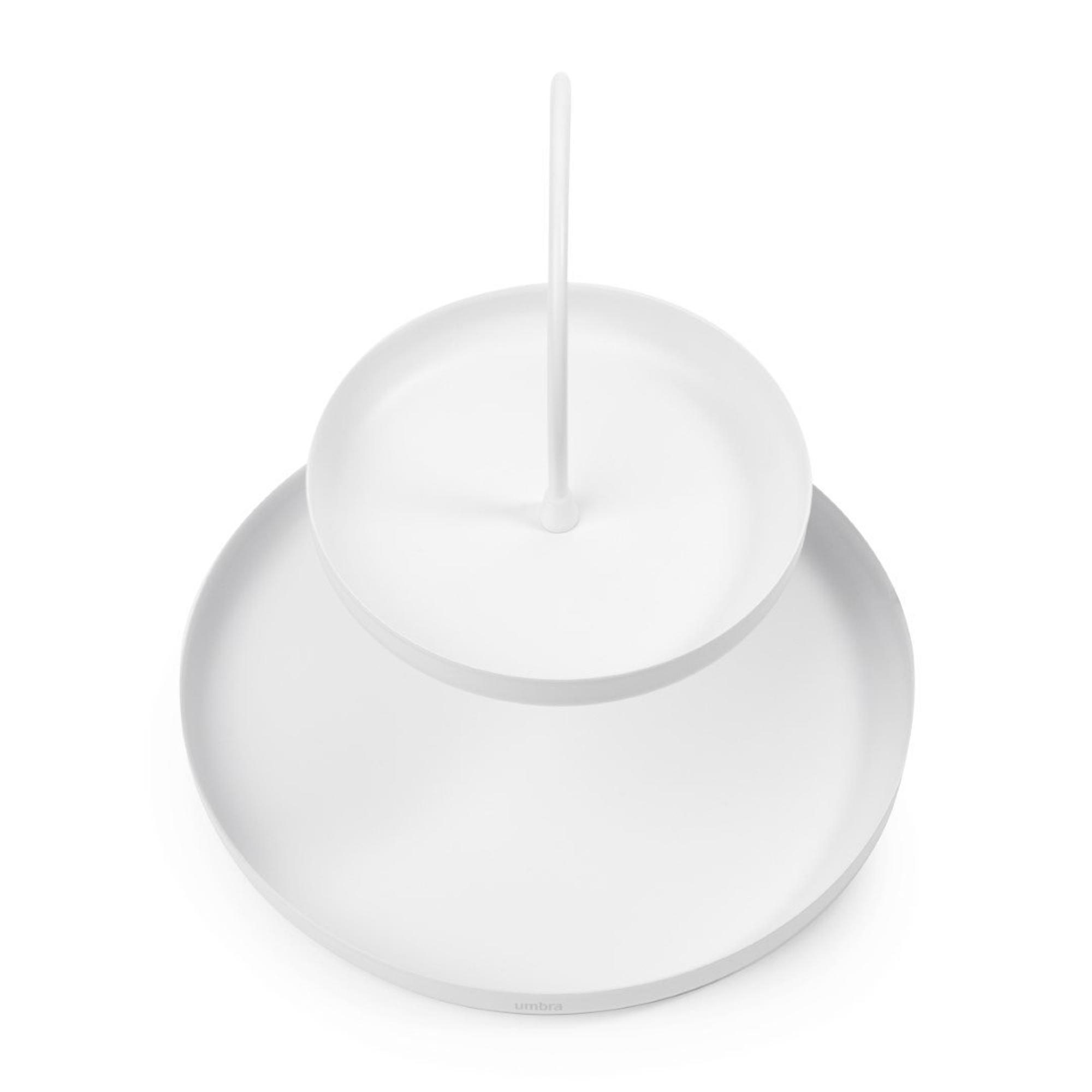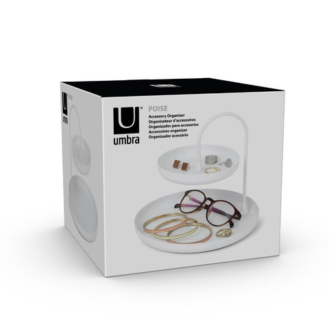 VeelzijdigCreatieve Umbra-klanten gebruiken de multifunctionele Poise niet alleen voor sieraden. We hebben er ook al zoetigheden en taartjes op zien liggen bij bruids- en babyshowers, trouwerijen en verjaardagsfeestjes. Verkrijgbaar in twee formaten De Poise is verkrijgbaar in twee formaten: groot (20,3 x 18 cm) en klein (7,6 x 10,4 cm). De beschermende, gestoffeerde onderkant zorgt dat de ondergrond niet beschadigd raakt.