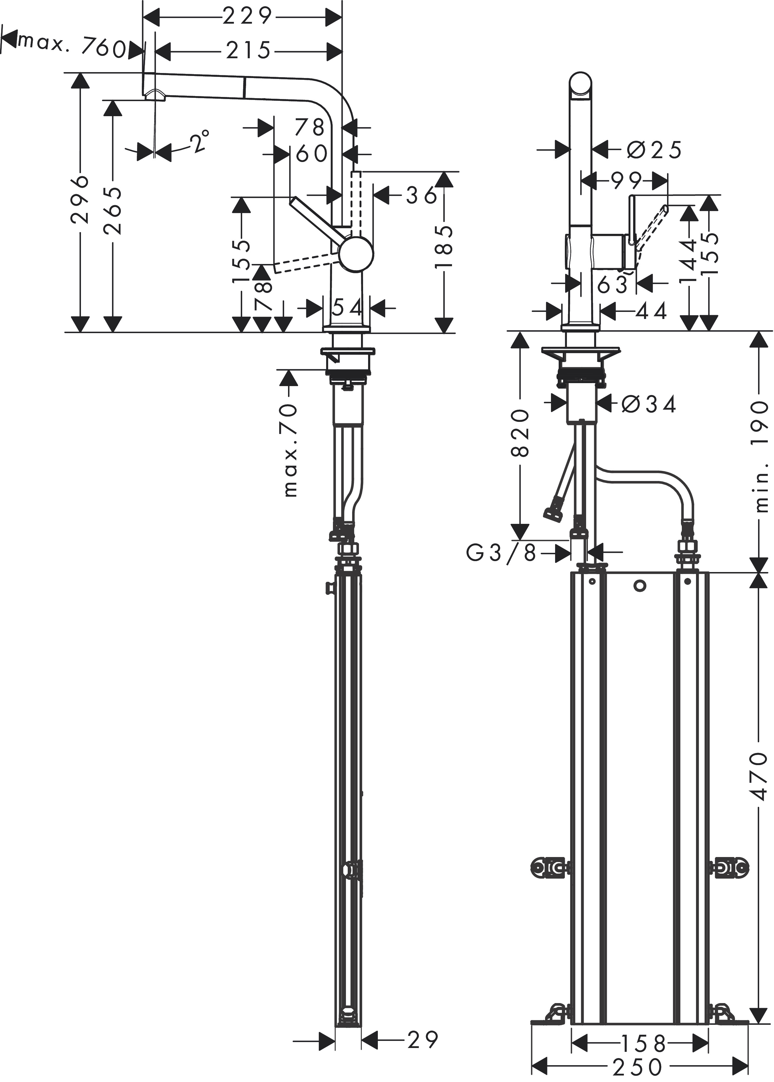 Hansgrohe Talis M54 1-gats keukenkraan 270 m. uittrekbare uitloop en sBox chroom