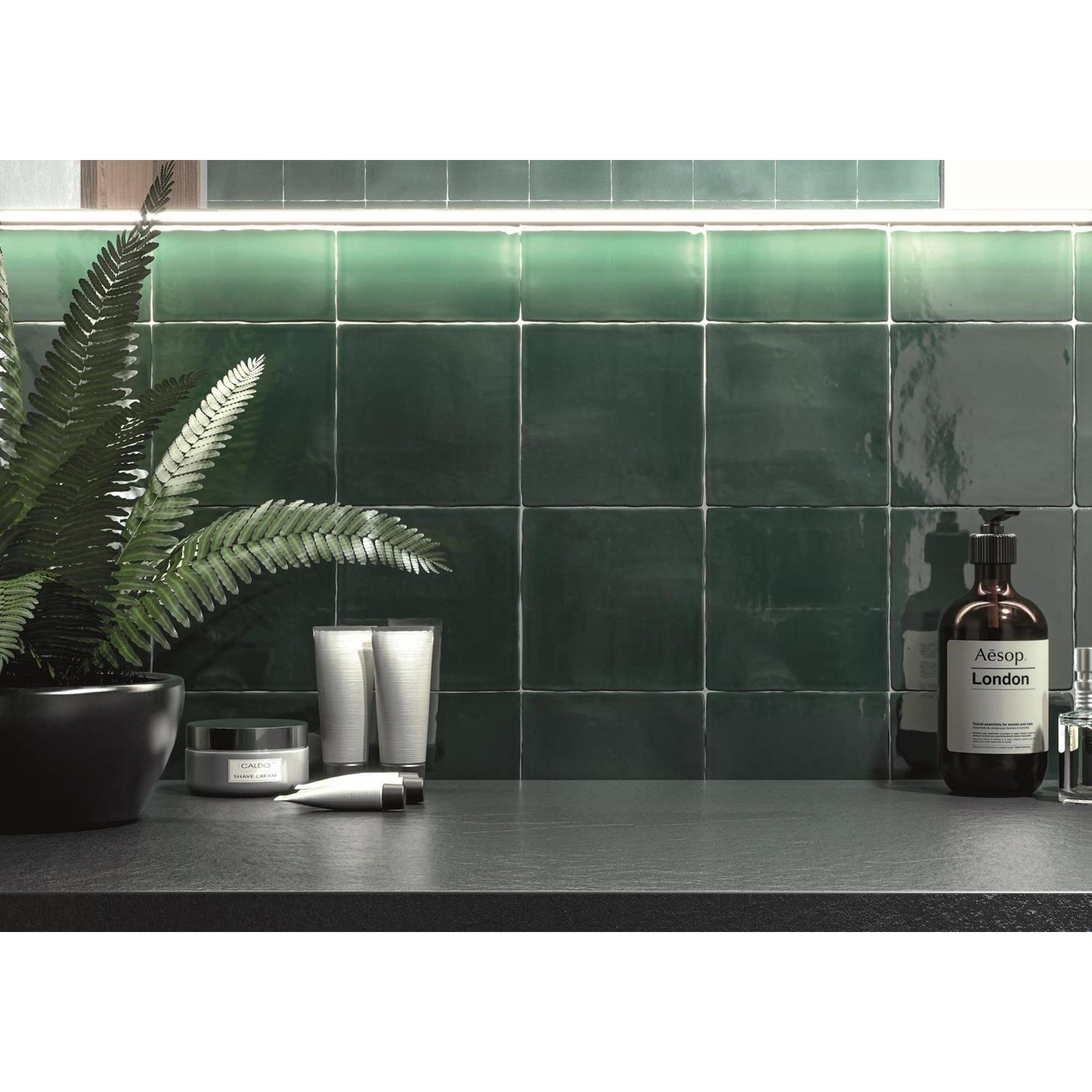 De By Goof wandtegel straalt een tijdloze stijl uit die moeiteloos elegantie toevoegt aan elke ruimte. De combinatie van oud groen en glans geeft een luxe uitstraling die de sfeer van de ruimte transformeert. Of je nu een hele muur wilt betegelen of een accent wilt creëren, deze tegel voegt direct een vleugje stijl toe aan je interieur.