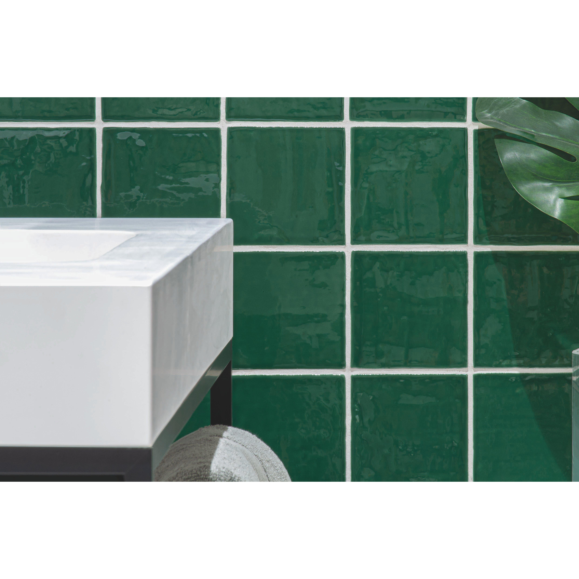 De By Goof wandtegel in oud groen glans kan met recht als 'mooi' worden bestempeld. De diepe groene kleur in combinatie met de glanzende afwerking zorgt voor een prachtig visueel effect. Elke tegel is zorgvuldig vervaardigd en straalt vakmanschap uit. De subtiele nuances in de kleur geven de tegel een levendige uitstraling en maken hem tot een echte eyecatcher in elke ruimte.