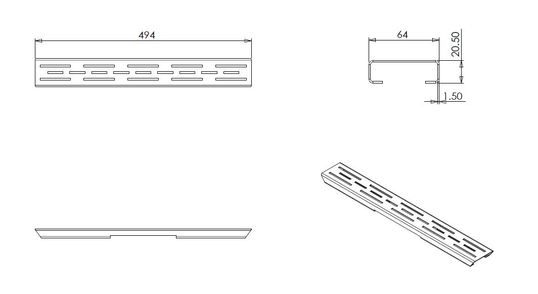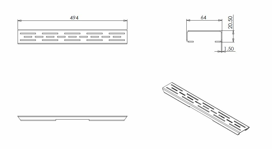 Wiesbaden rooster standaard voor 3e generatie douchegoot 50 x 7 cm mat zwart
