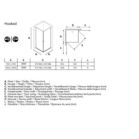 Deze hoekinstap van 90x90 cm uit de serie Hooked kenmerkt zich door zijn hoogte van 200 cm én het gemak in onderhoud. Het 6 mm dikke heldere veiligheidsglas heeft een antikalk coating, zodat het glas ook langer helder blijft.