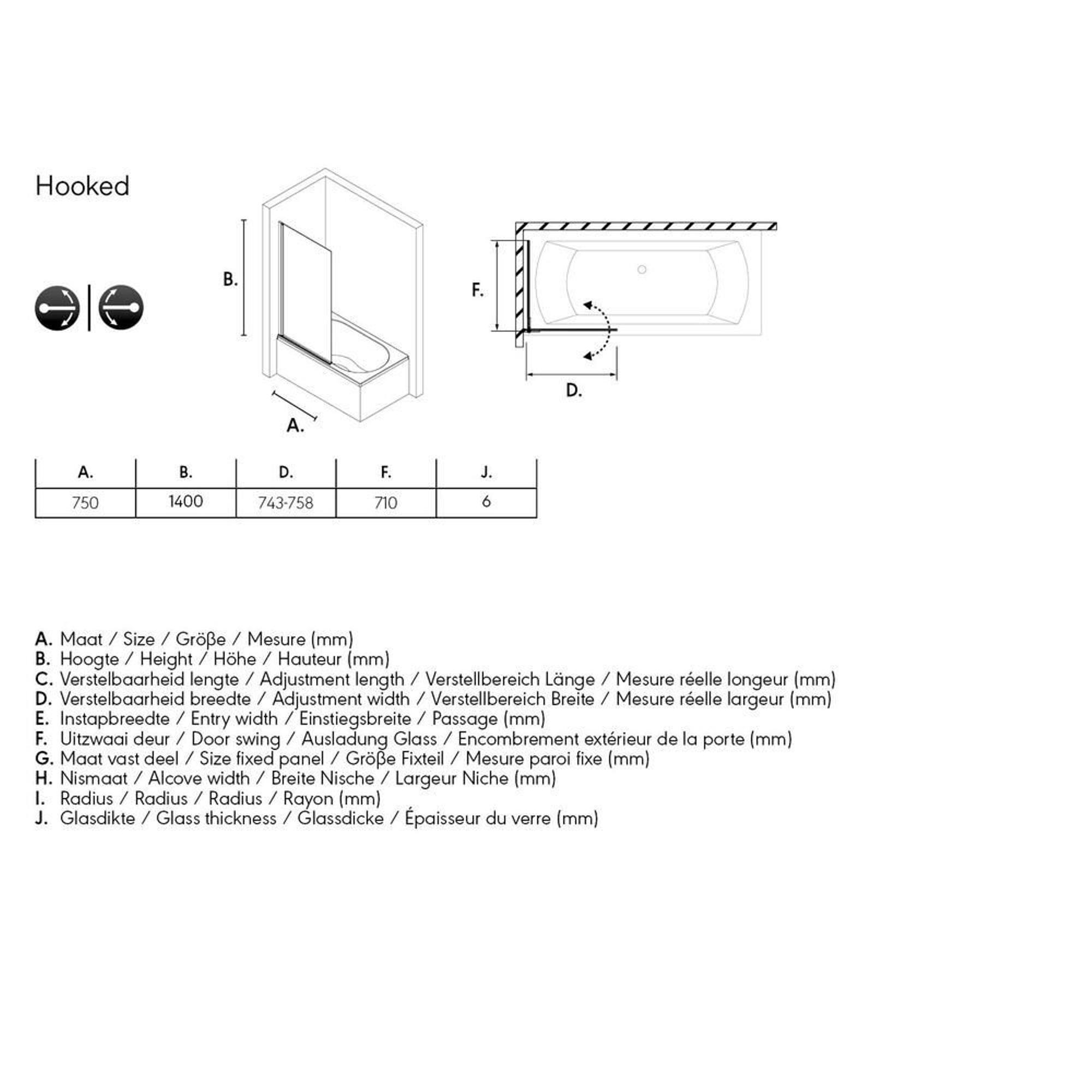 Sealskin get wet Hooked badwand 75x140cm 6mm veiligheidsglas chroom