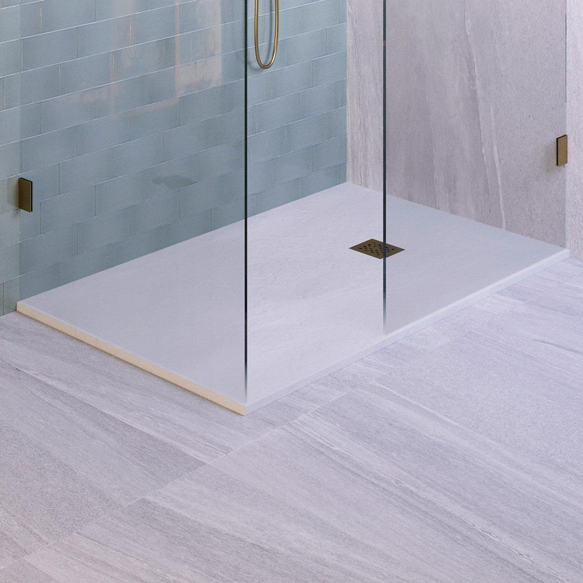 Brauer Relievo Crag Douchebak - 90x160cm - antislip - antibacterieel - mineraalmarmer - mat wit
