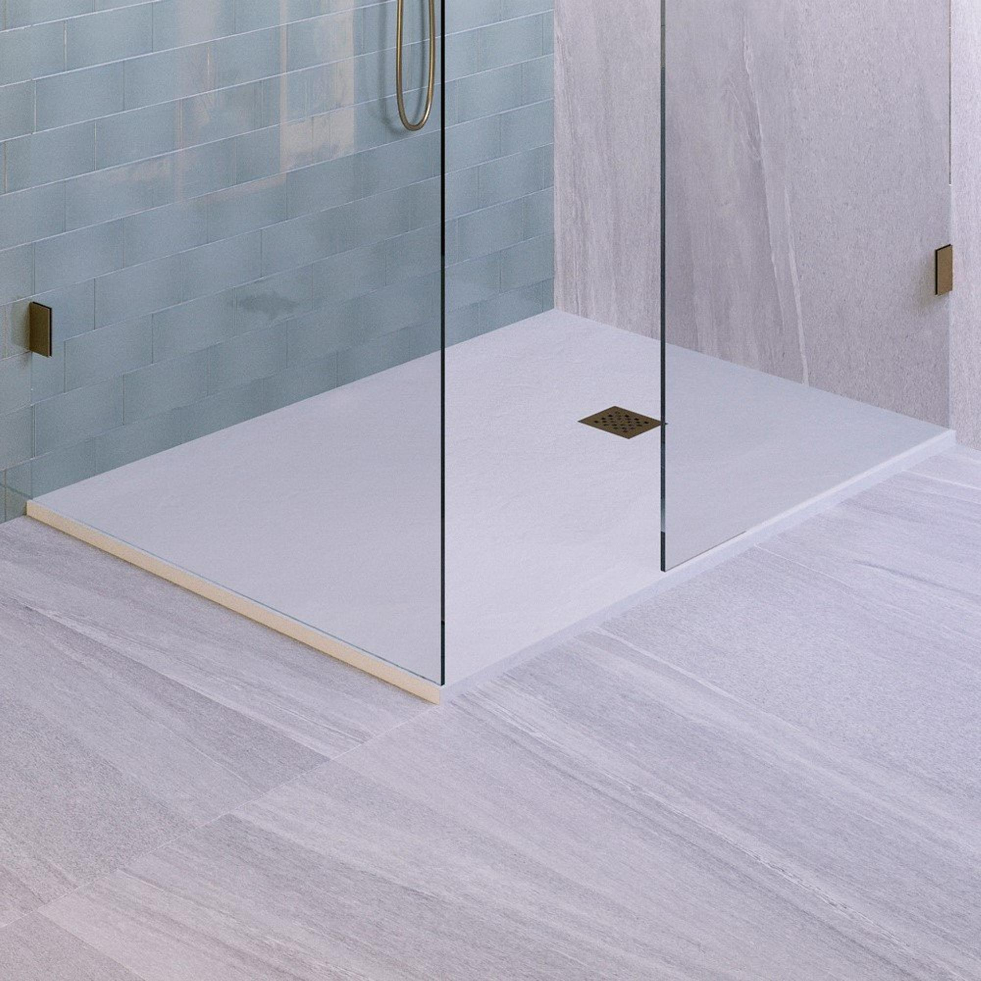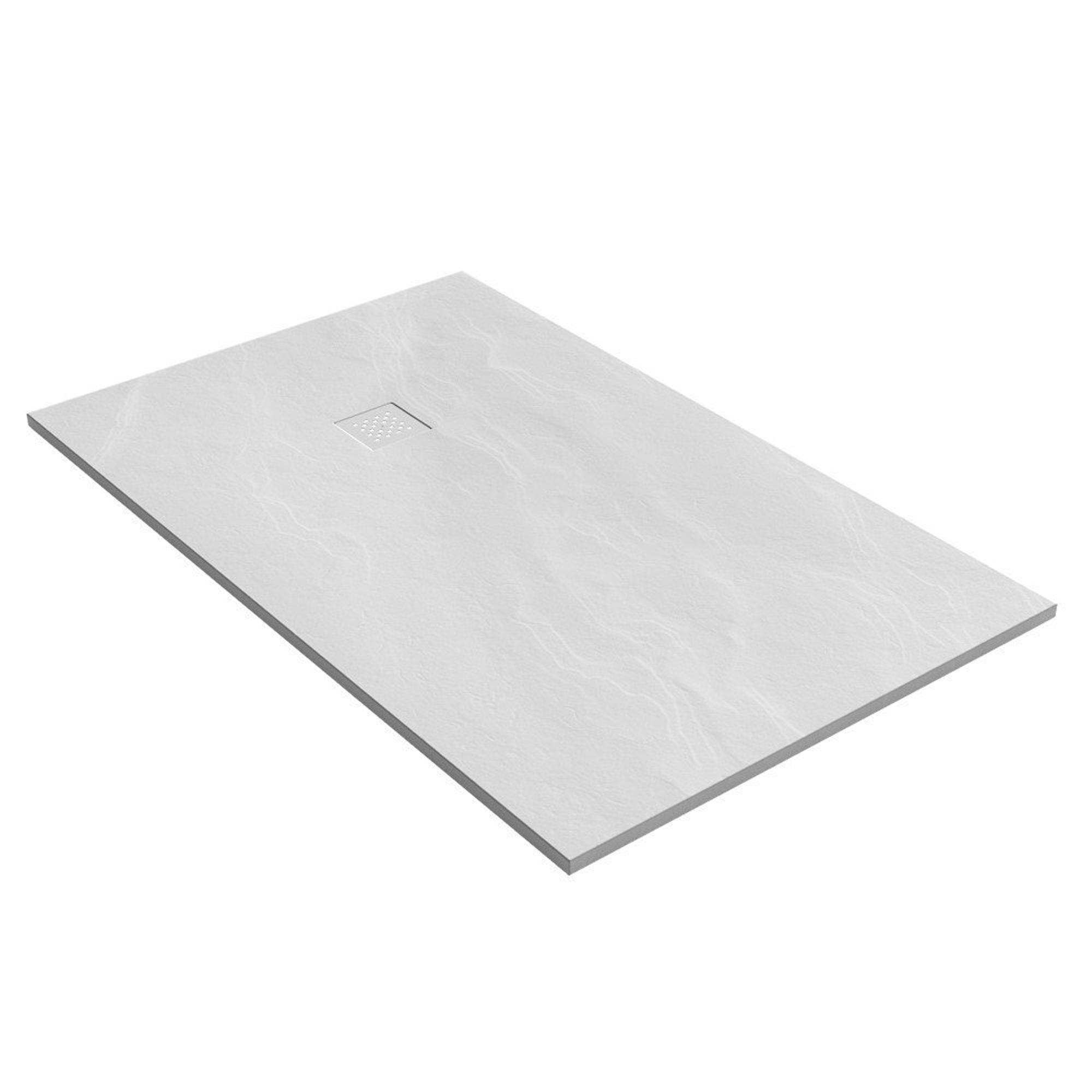Brauer Relievo Crag Douchebak - 100x160cm - antislip - antibacterieel - mineraalmarmer - mat wit