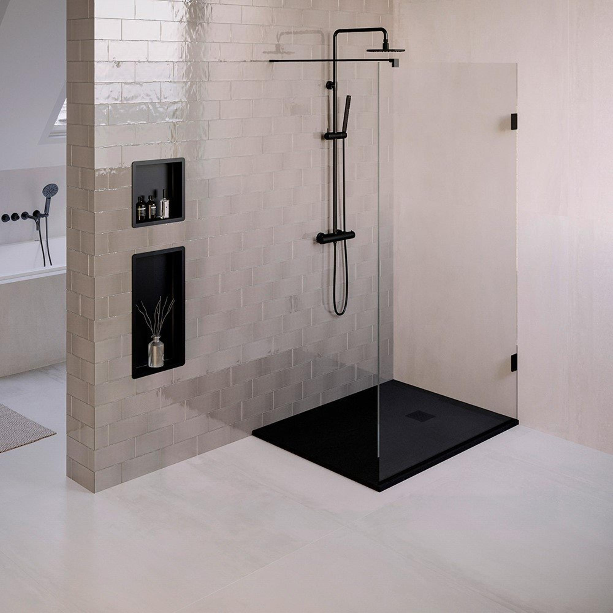 BRAUER Relievo Crag Douchebak 120x90cm antislip antibacterieel mineraalmarmer mat zwart
