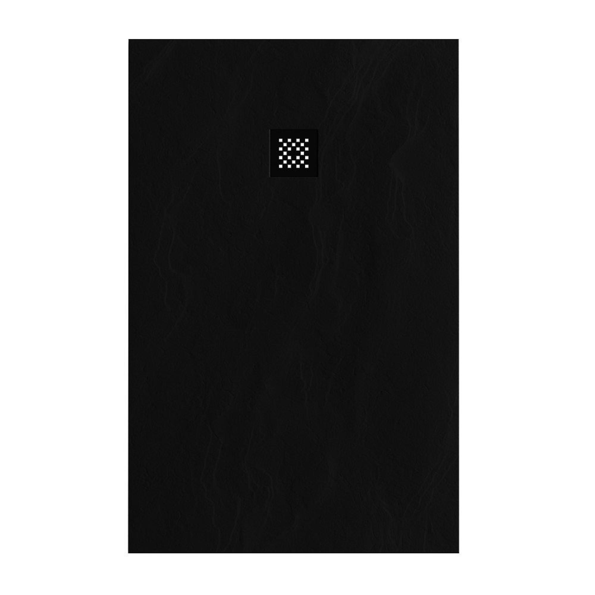 Brauer Relievo Crag Douchebak - 90x140cm - antislip - antibacterieel - mineraalmarmer - mat zwart