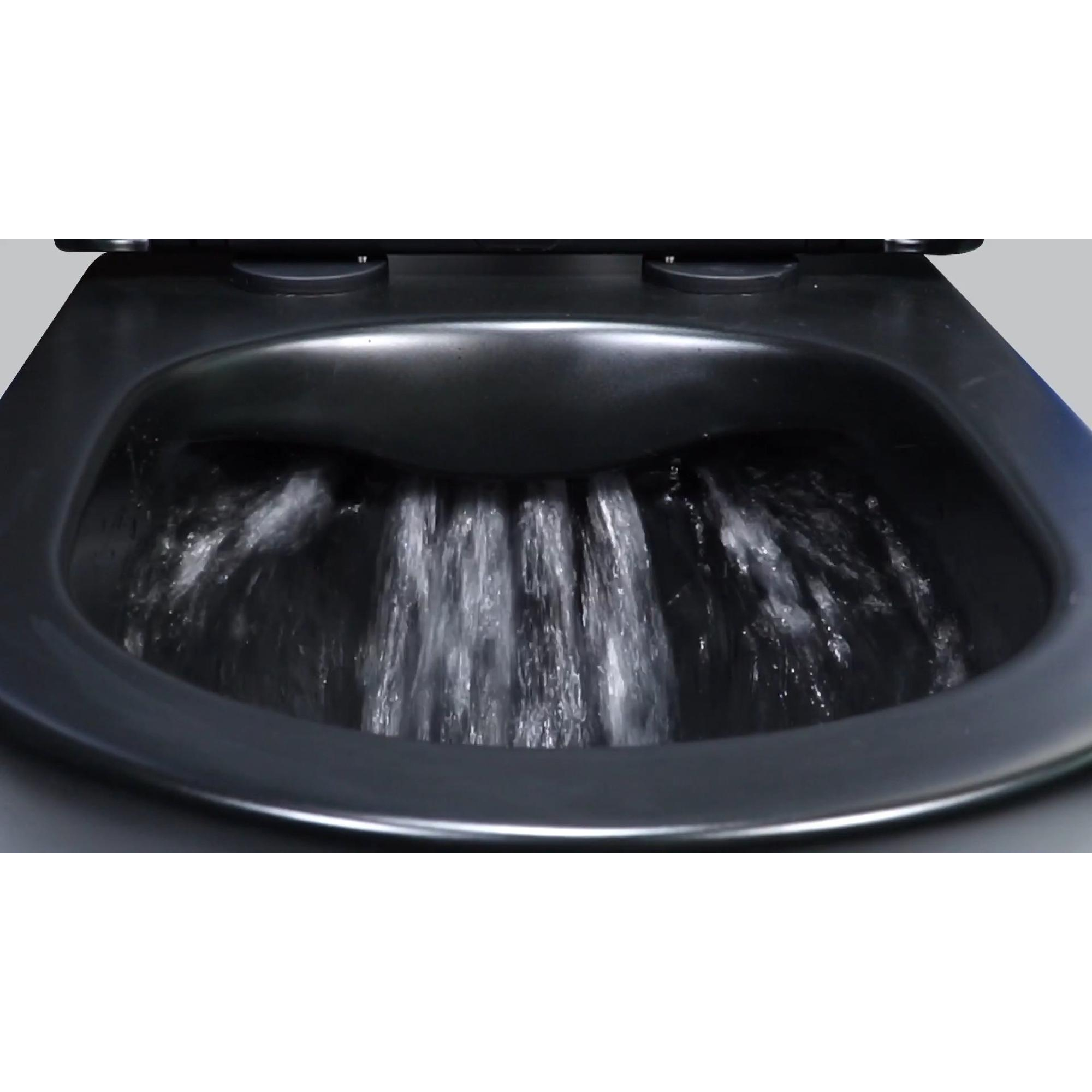 De QeramiQ Dely Wandclosetpack in mat zwart straalt een ongeëvenaarde stijl uit. De diepe, rijke kleur voegt een vleugje elegantie toe aan elke badkamer. Het minimalistische design en de gladde afwerking zorgen voor een moderne uitstraling die perfect past bij hedendaagse interieurs. Met dit wandclosetpack creëer je een luxueuze sfeer waarin comfort en design hand in hand gaan.
