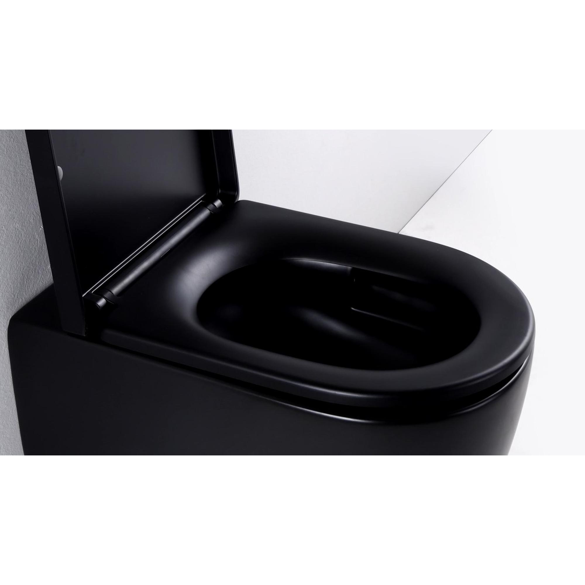 QeramiQ Dely Wandclosetset - 36.3x51.7cm - diepspoel - rimless - slim zitting - mat zwart