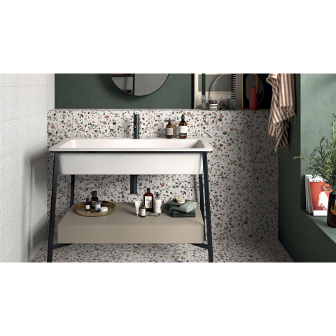 De Abk Imoker Play tegel is niet alleen geschikt voor vloeren, maar kan ook gebruikt worden voor wanden, waardoor je eindeloze mogelijkheden hebt om je ruimte te personaliseren. Of je nu een accentmuur wilt creëren of een volledige vloer wilt bedekken, deze tegel past zich moeiteloos aan en zorgt voor een naadloze afwerking. De Drops Multiwhite afwerking voegt een speels element toe aan de tegel, waardoor elke ruimte een unieke uitstraling krijgt.