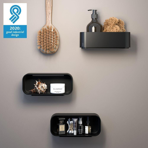 Schuif het bakje op het muurplaatje en je kunt altijd afwisselen. Het wandbakje is gemaakt van kunststof en kan dus niet roesten. Door de waterafloop onderin kun je het bakje gemakkelijk schoonhouden zodat het douchemandje jarenlang mooi blijft. De zwarte kleur geeft een stoere twist aan je badkamer en is makkelijk te combineren met andere accessoires.
