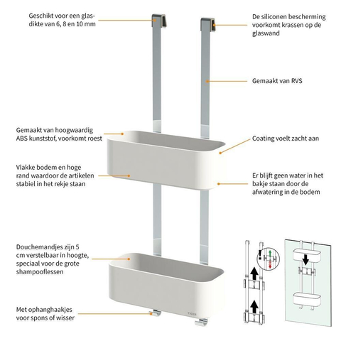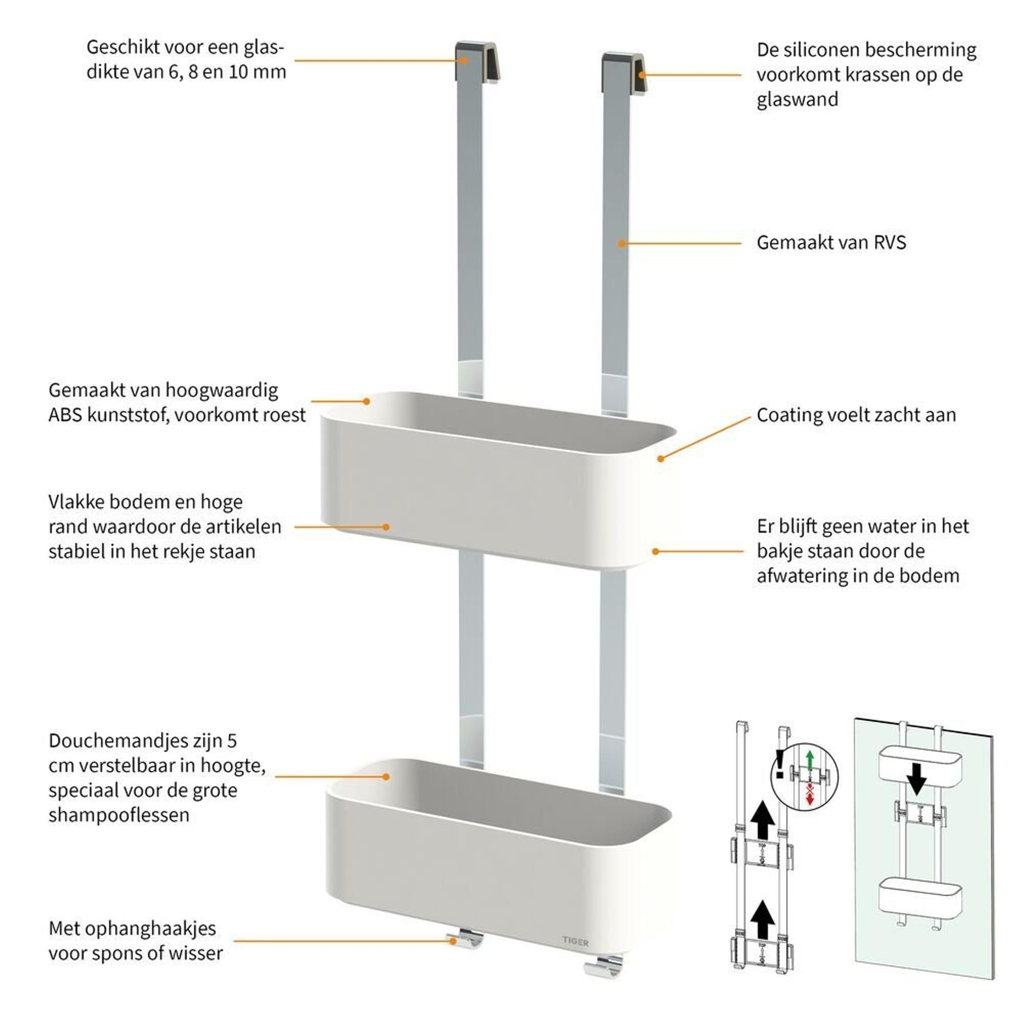 Tiger 2 Store Ophangbaar Doucherek 25cm Wit