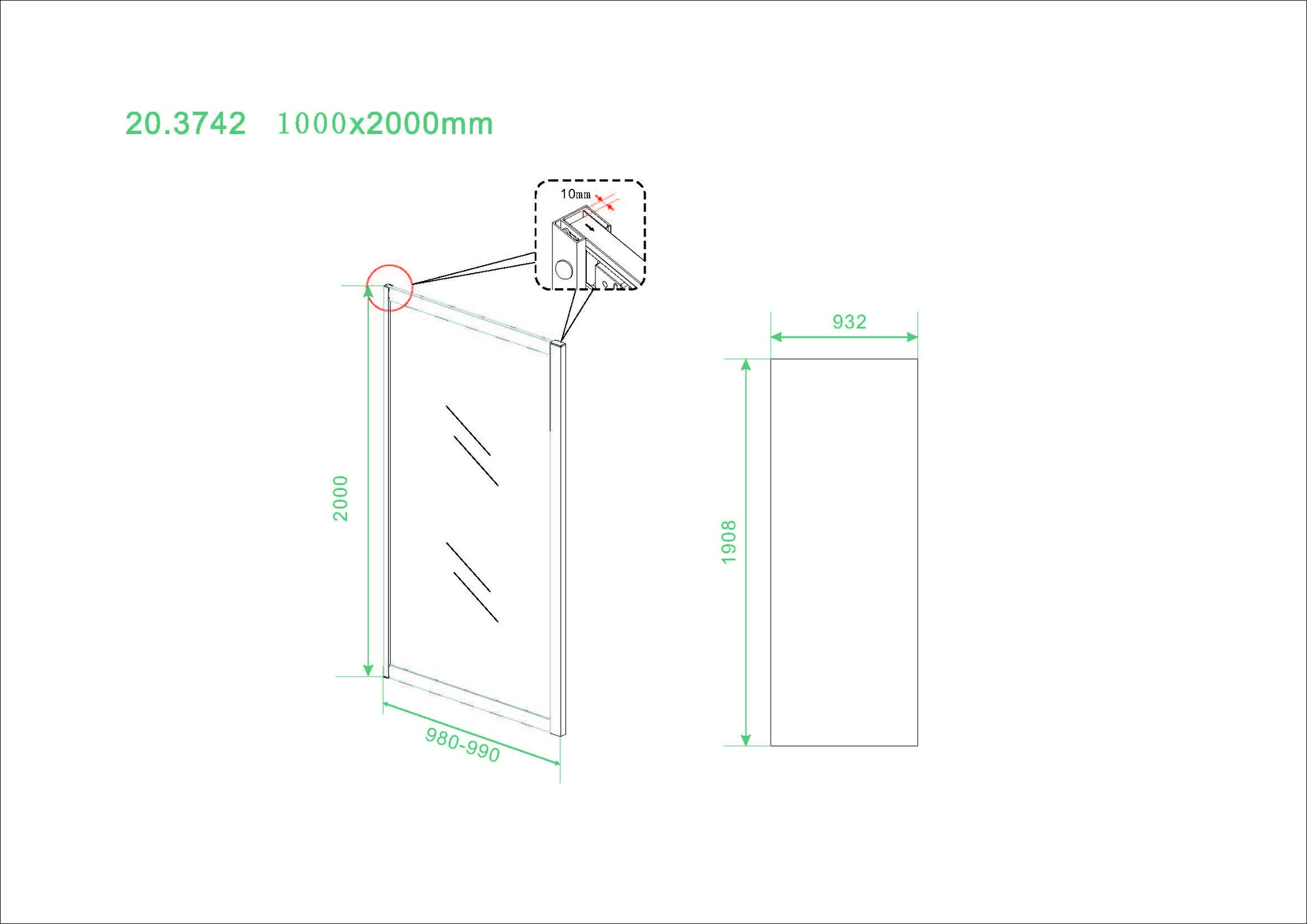 | Dikte glas | 8 mm | |