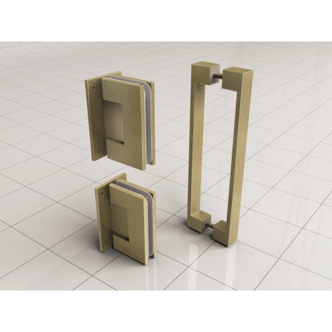 Wiesbaden Less scharnierset en greep voor profielloze nisdeur geborsteld messing