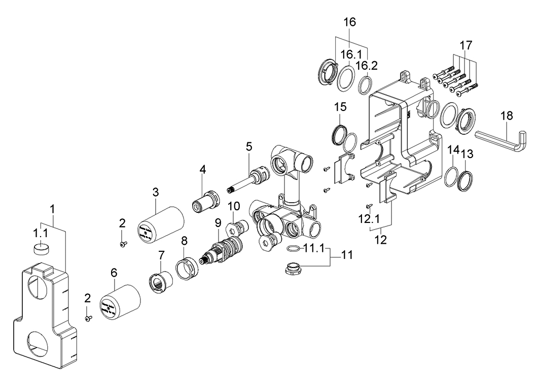 Wiesbaden inbouwdeel+box 2-wegs douchethermostaat