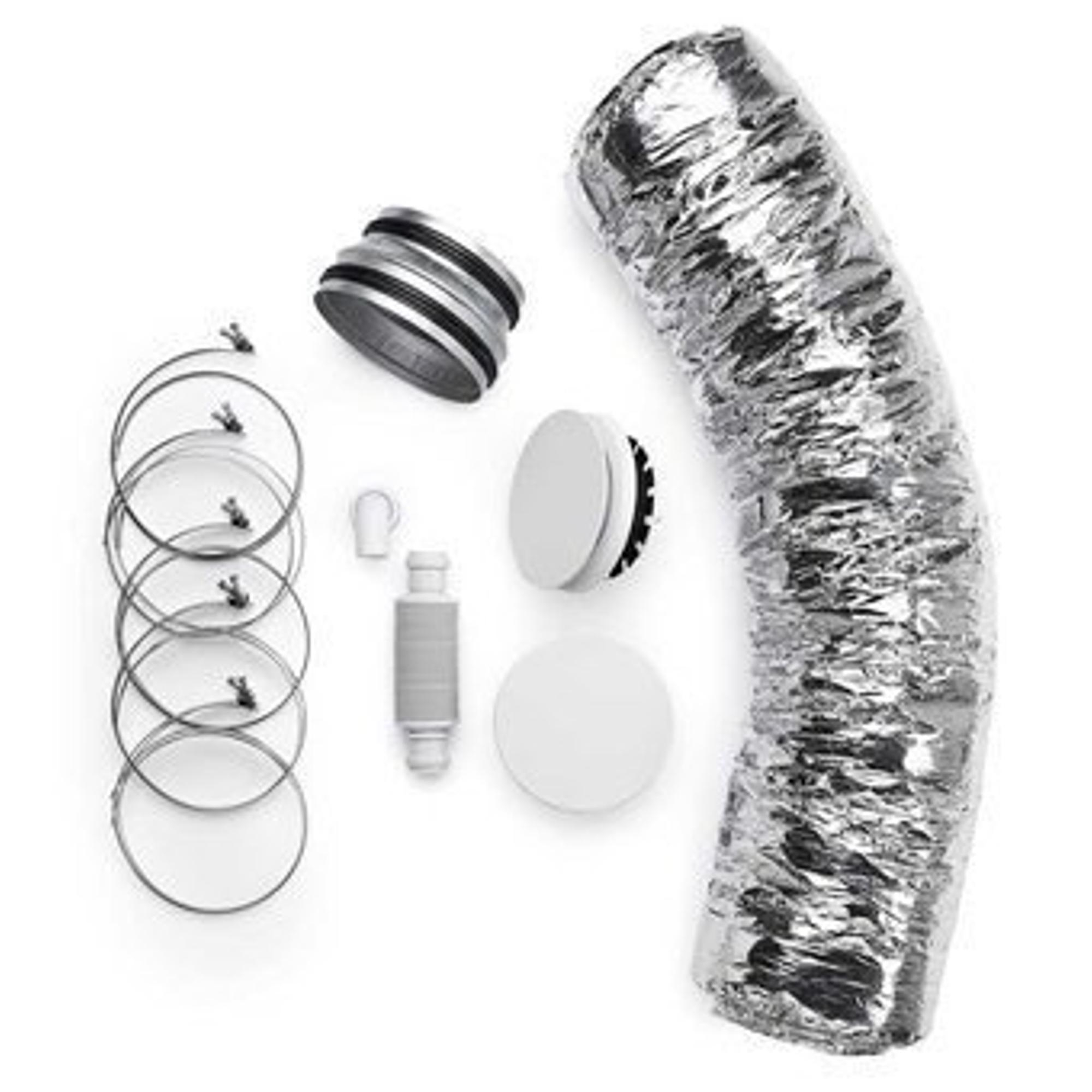De meegeleverde geluidsdempers en ventielen zorgen voor een fluisterstille werking van jouw ventilatiesysteem. Daarnaast maken de slangklemmen en verbindingsstukken het mogelijk om een volledig luchtdichte aansluiting te realiseren. De unieke ontwerpen van de ventielen voorkomen vervuiling aan plafonds, wat onderhoud tot een minimum beperkt.