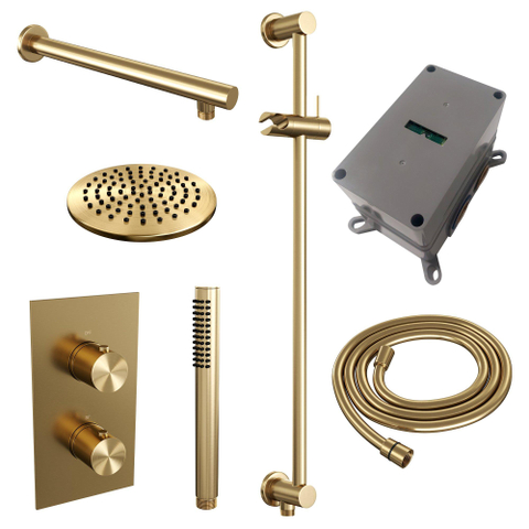 Brauer Gold Edition Regendoucheset inbouw - hoofddouche 20cm - gladde knop - handdouche Staaf 1 stand - glijstang - PVD - geborsteld goud