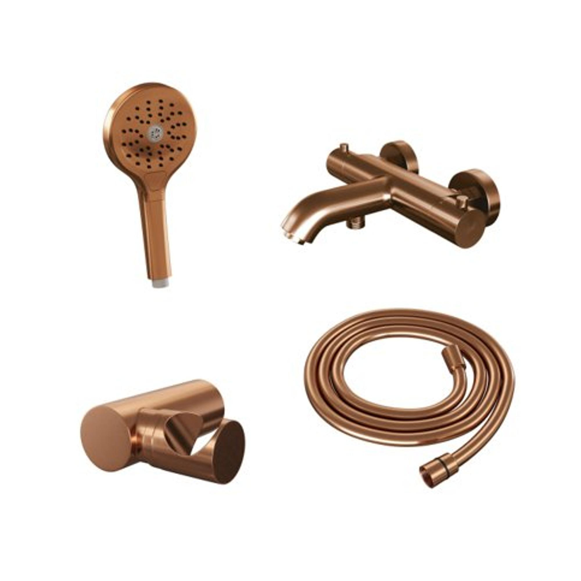 Brauer Copper Edition Badkraan opbouw - douchegarnituur - 2 gladde knoppen - handdouche rond 3 standen - PVD - geborsteld koper