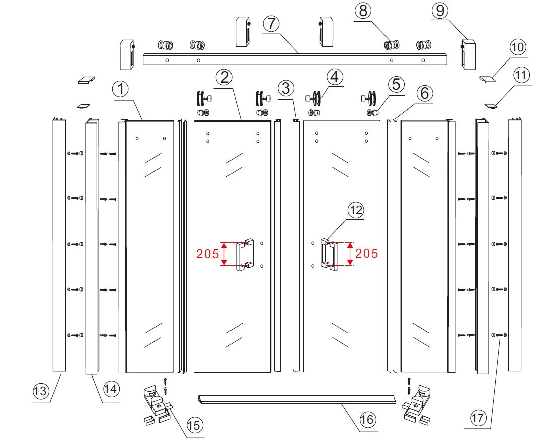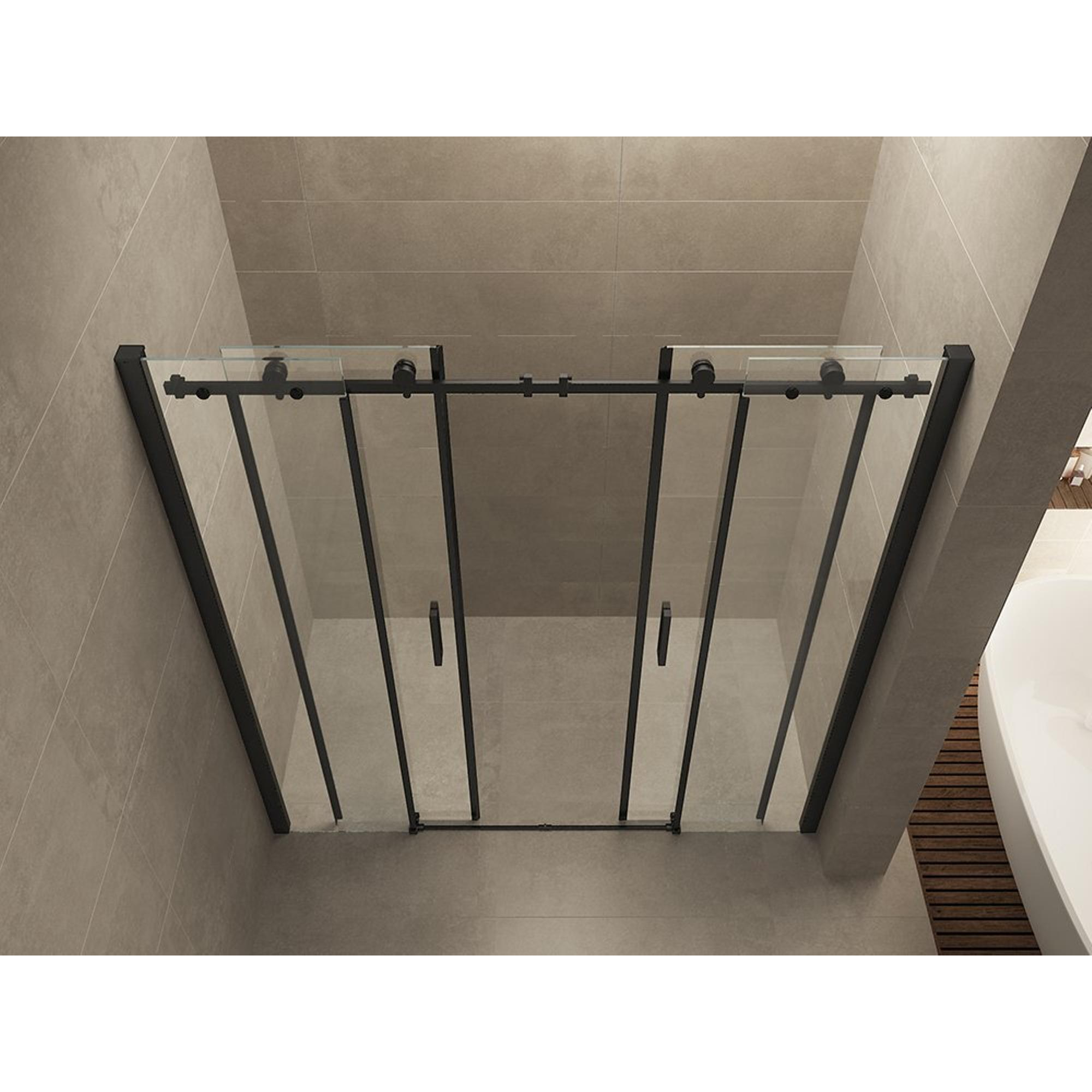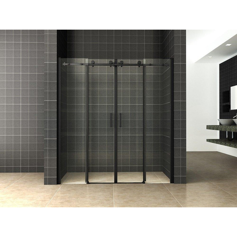 Wiesbaden Slide nis schuifdeur dubbel 1800 x 2000 x 8 mm nano helder glas/mat zwart