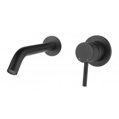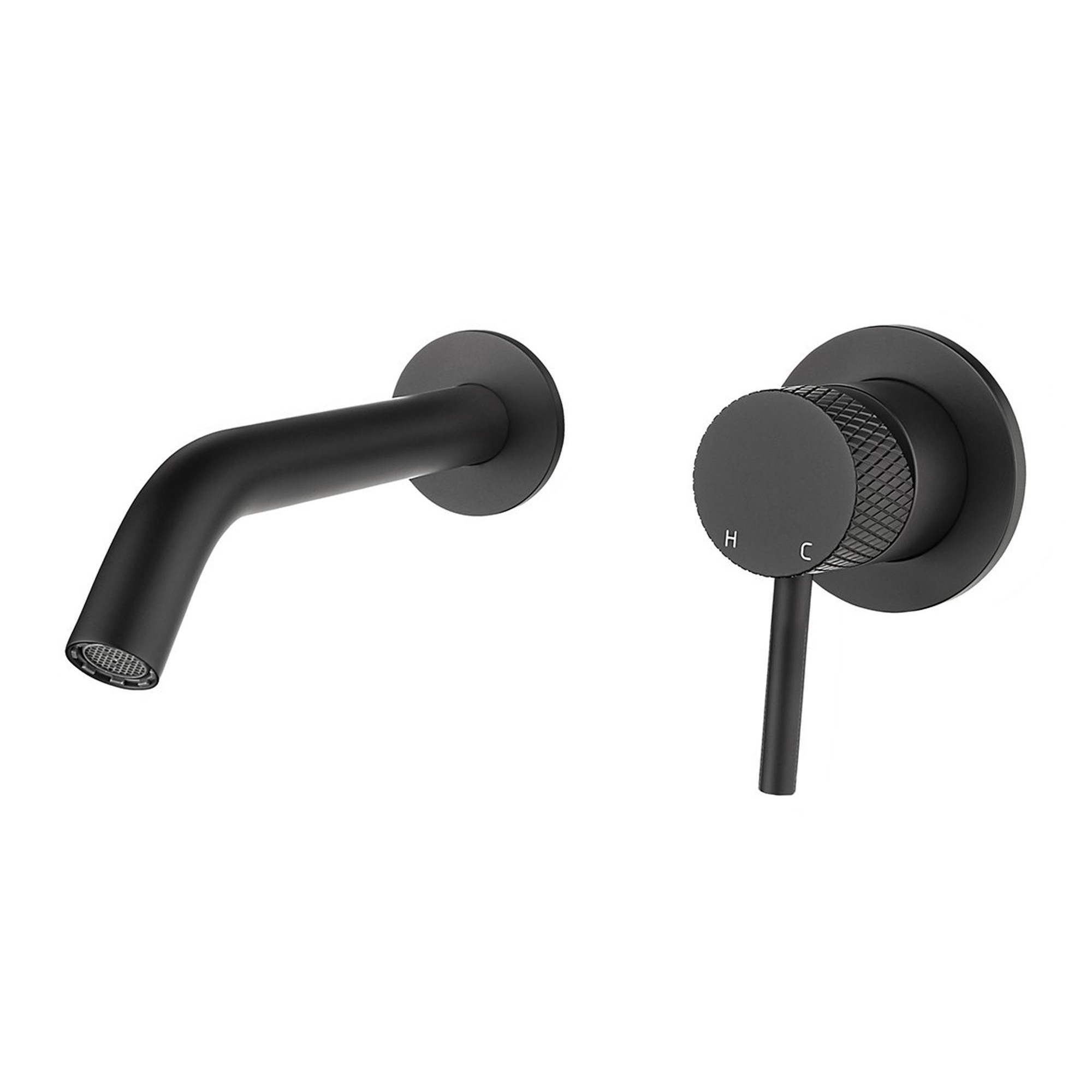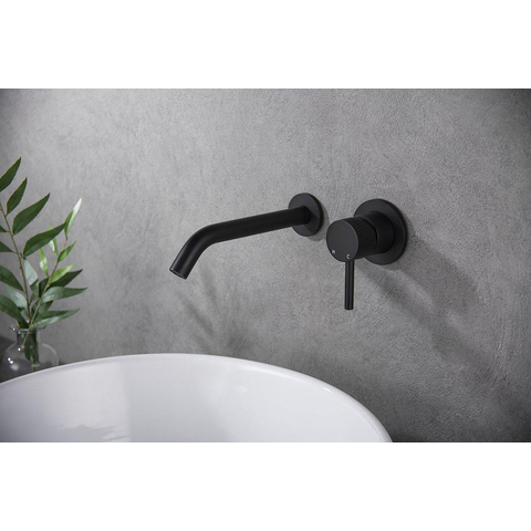 Wiesbaden Ribbd eenhendel wastafelkraan inbouw compleet mat zwart
