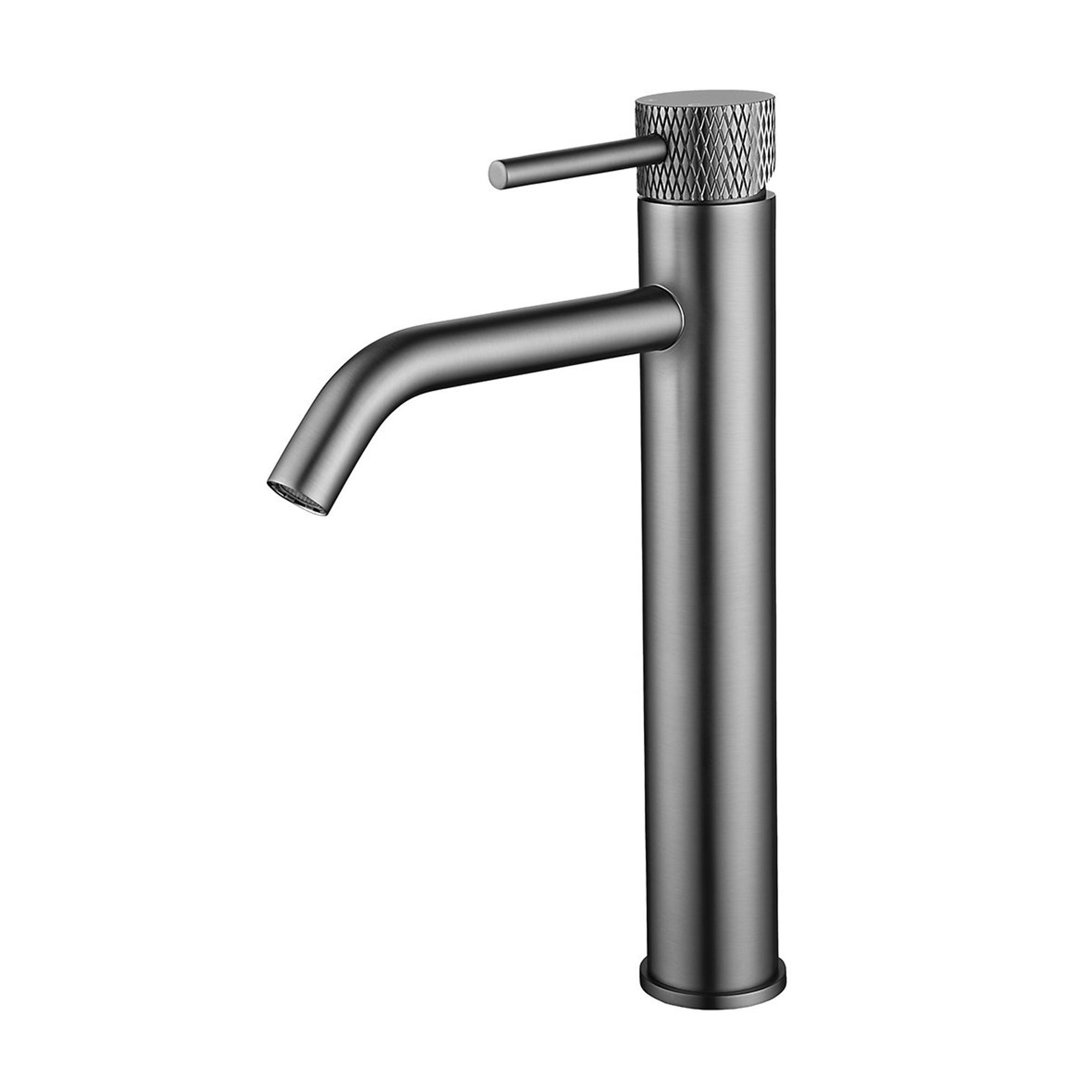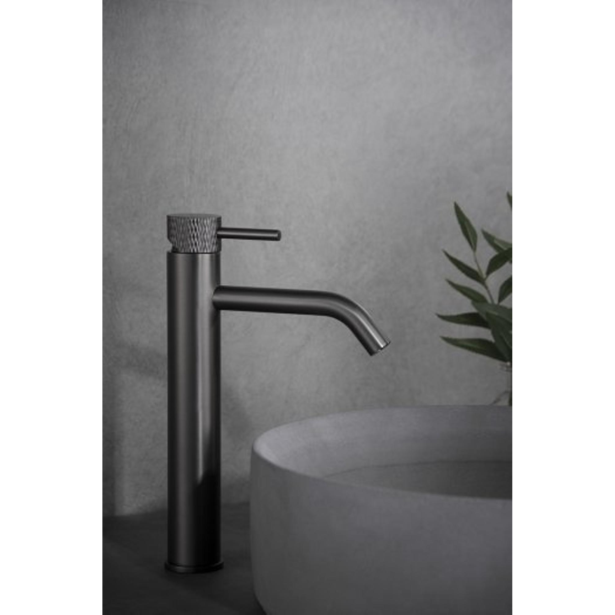 Wiesbaden Ribbd XL wastafelkraan hoog gunmetal