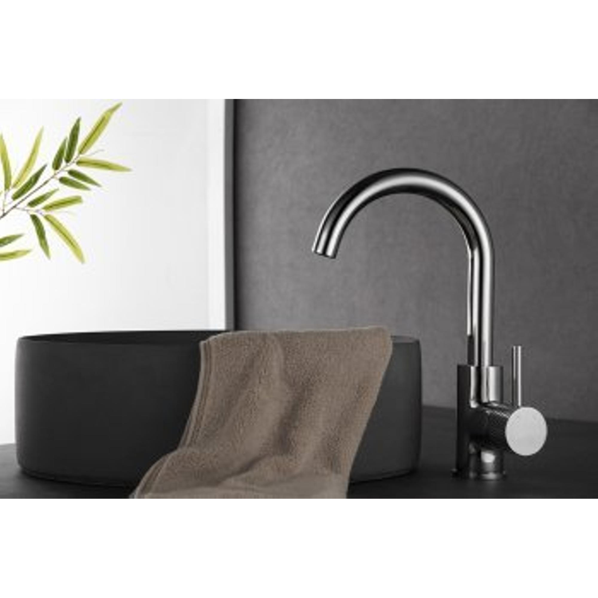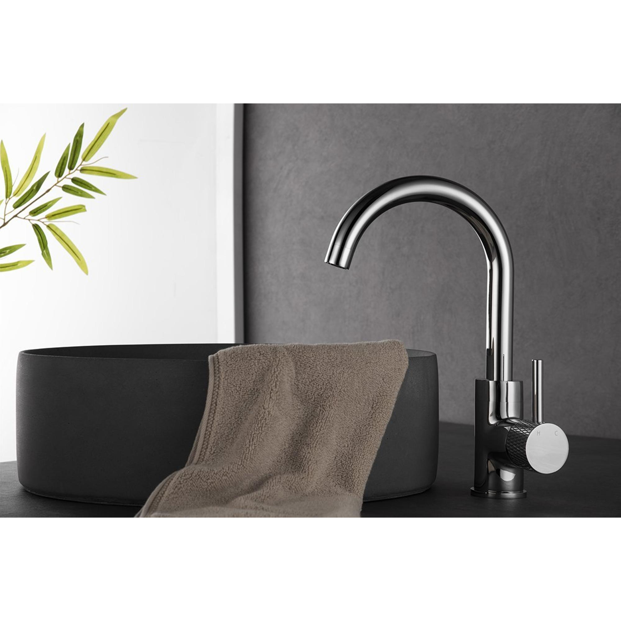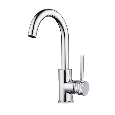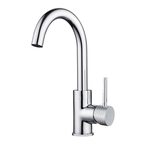 Wiesbaden Ribbd wastafelkraan met draaibare uitloop en coldstart chroom