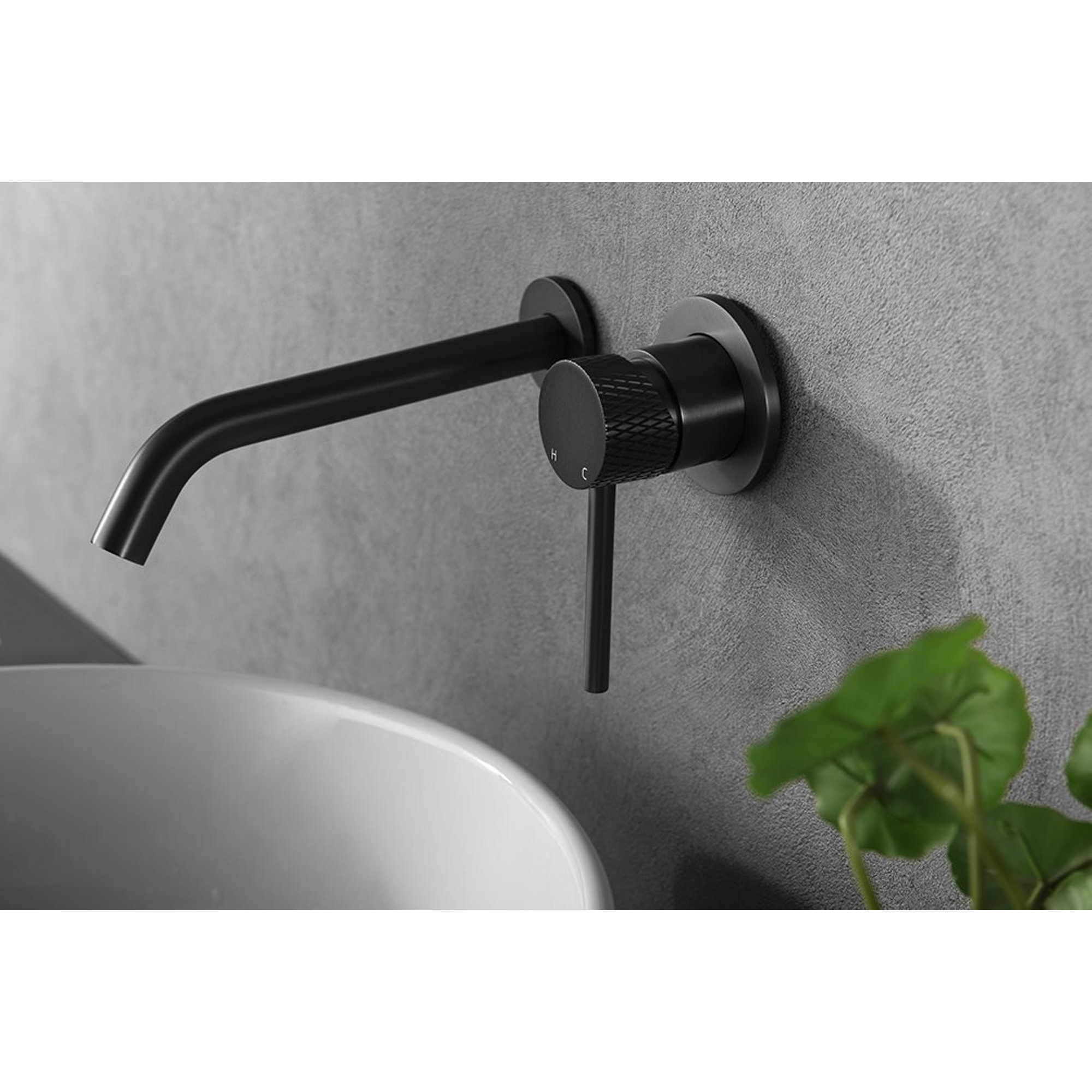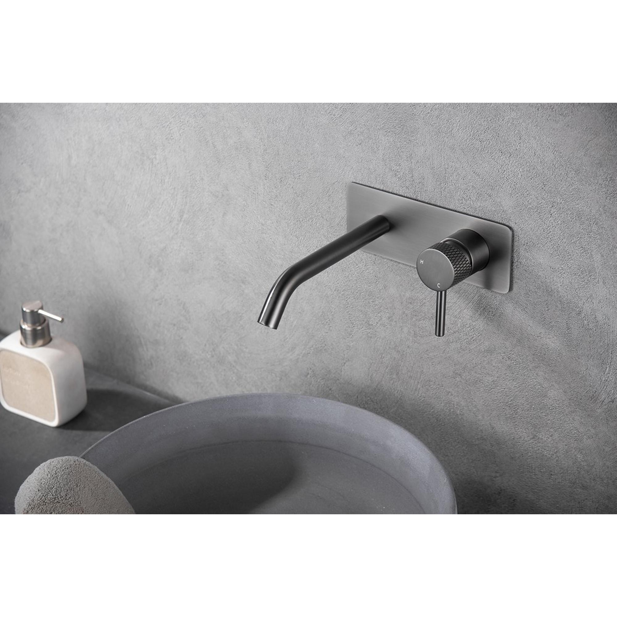 Wiesbaden Ribbd eenhendel wastafelkraan met coldstart inbouw compleet gunmetal