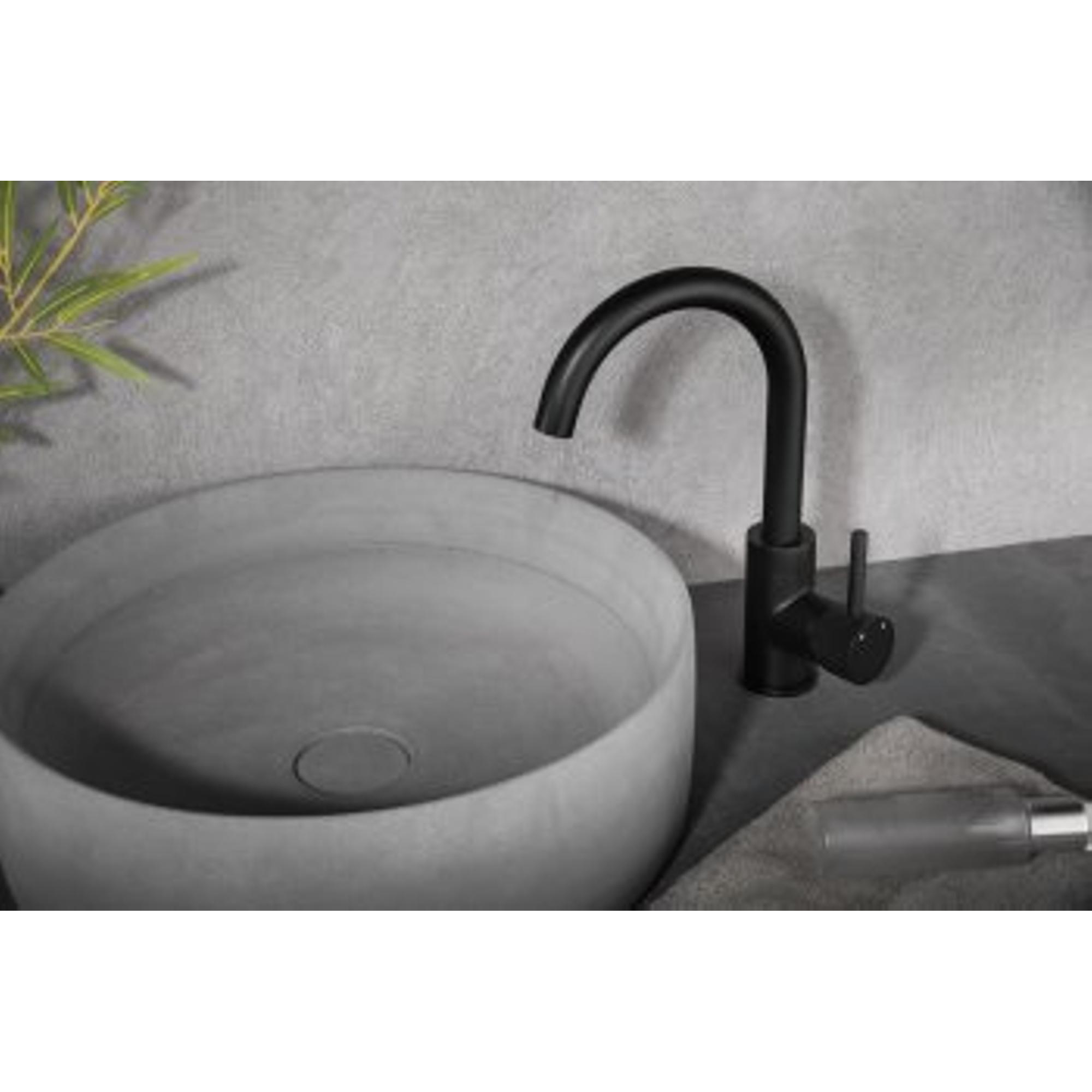 Wiesbaden Ribbd wastafelkraan met draaibare uitloop mat zwart