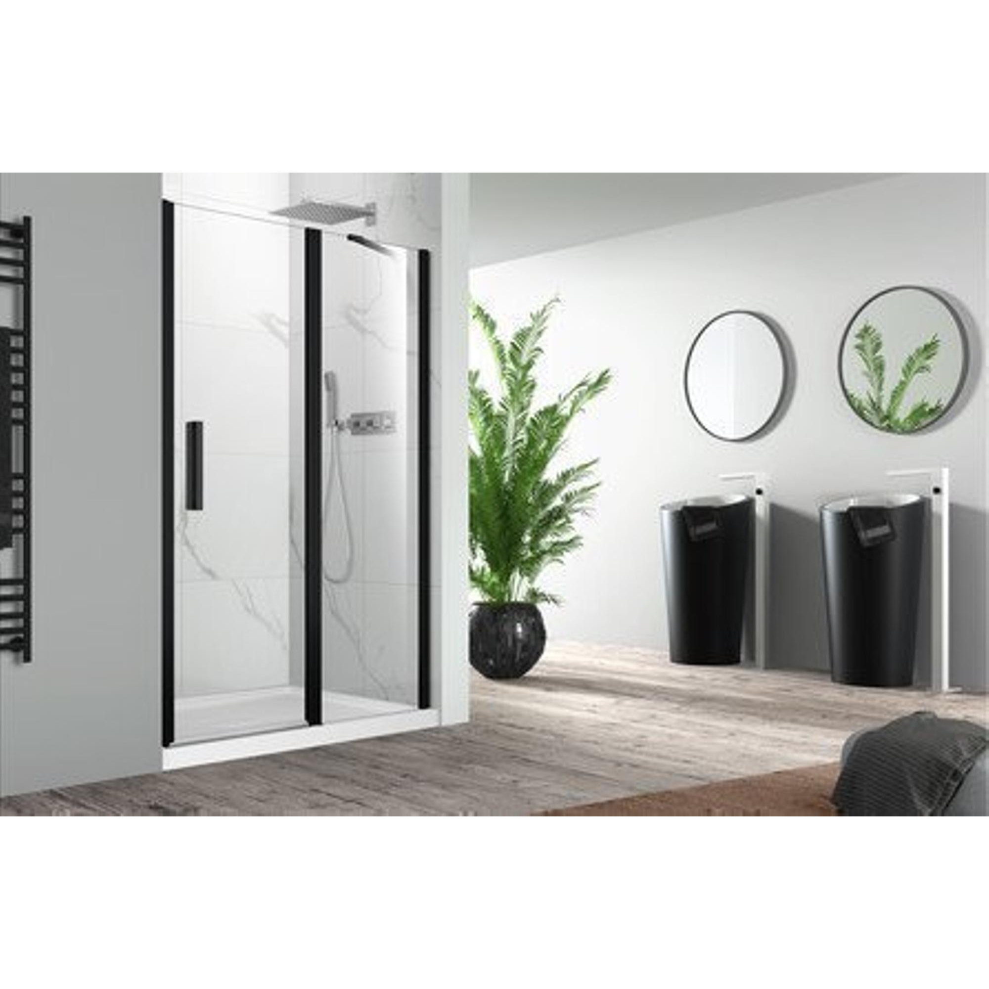 Nemo Pina Xl draaideur 100x200cm met vast paneel 6mm Helder veiligheidsglas met antikalk links en rechts Zwart