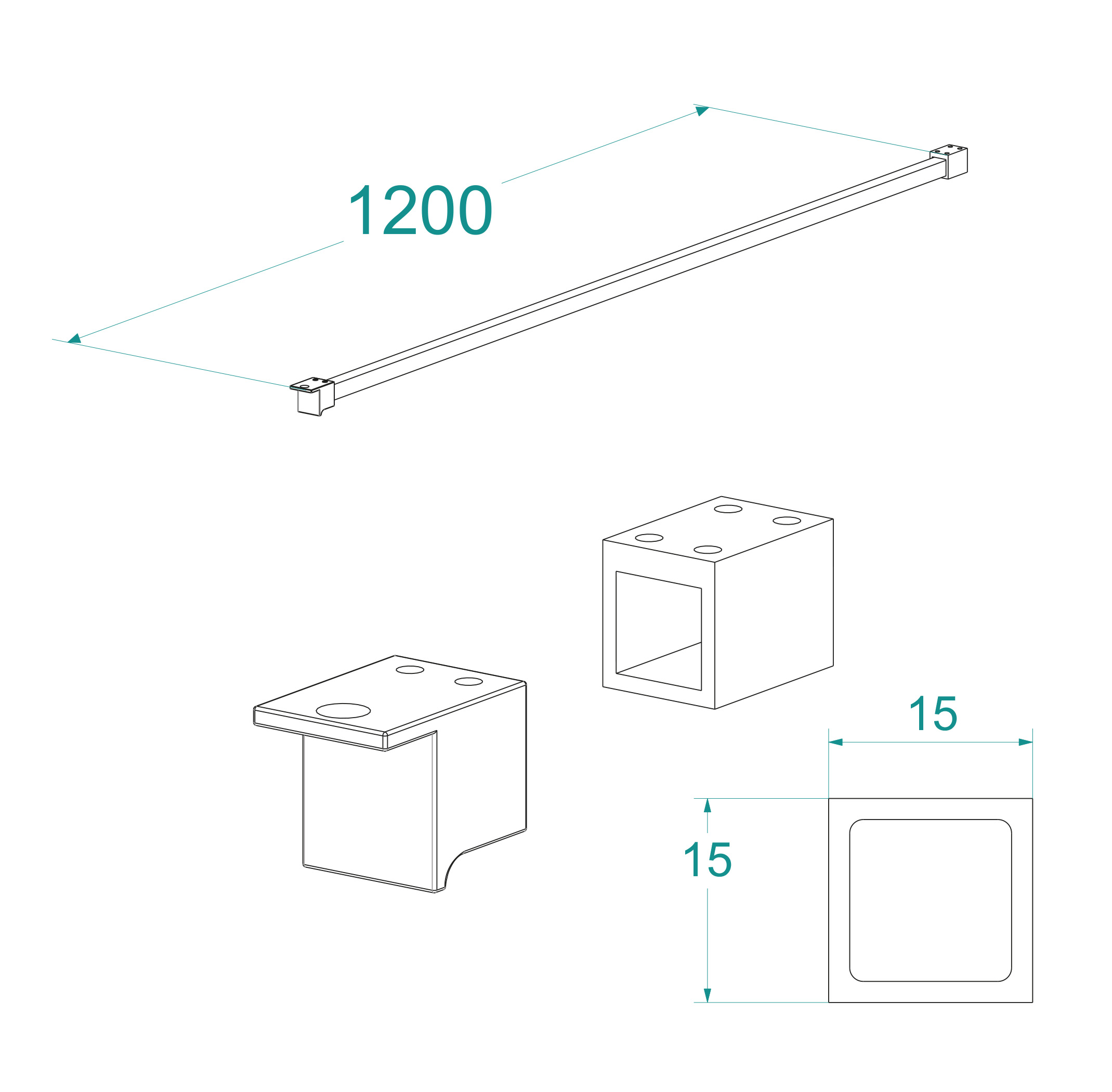 Wiesbaden stabilisatiestang 1200mm voor Square inloopdouche mat zwart