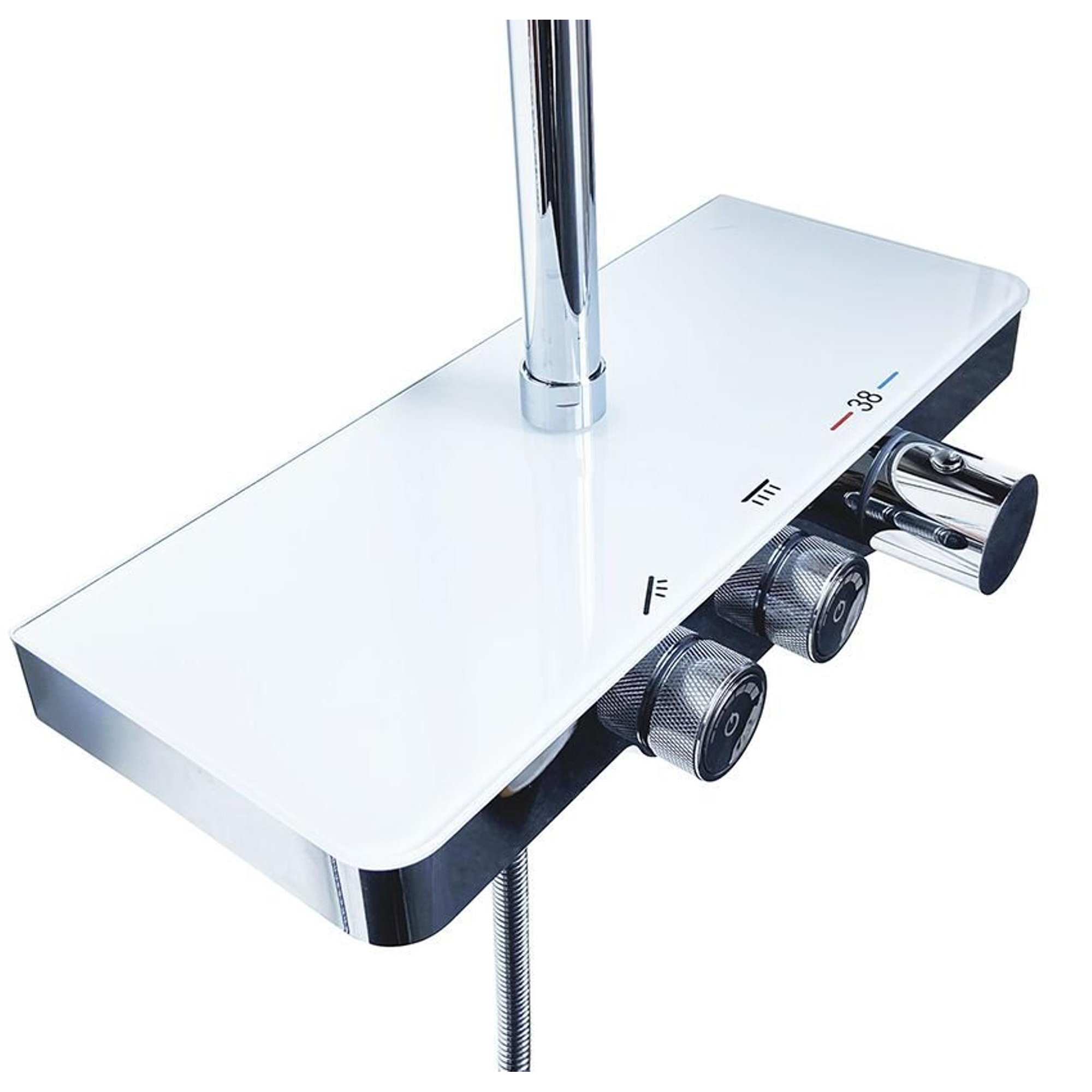 Kies voor deze opbouwset en je hebt een complete set bij elkaar om de doucheruimte in één keer af te monteren. De Nuovo thermostatische regendoucheset opbouw met planchet in de kleur chroom is gemaakt van hoogwaardig messing.