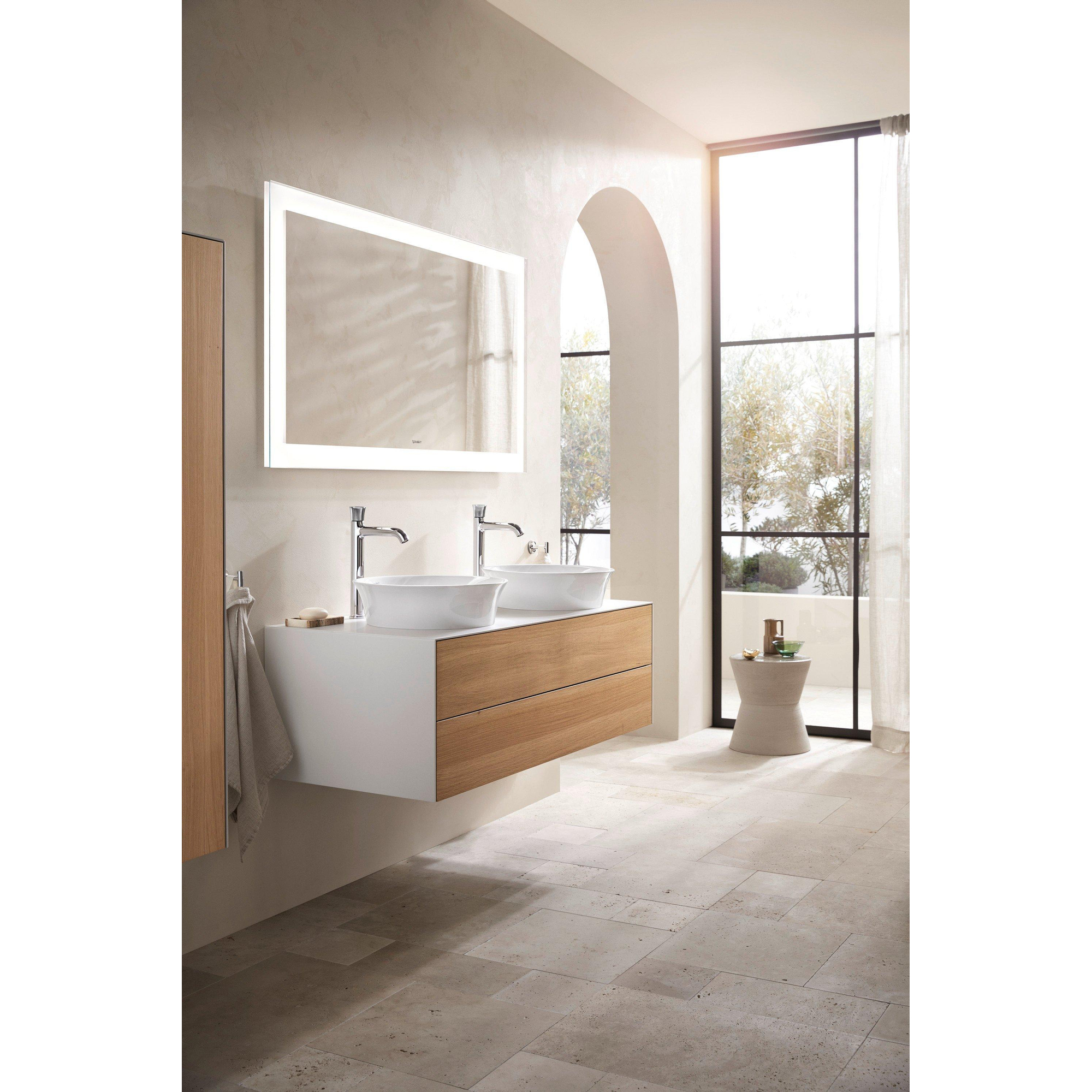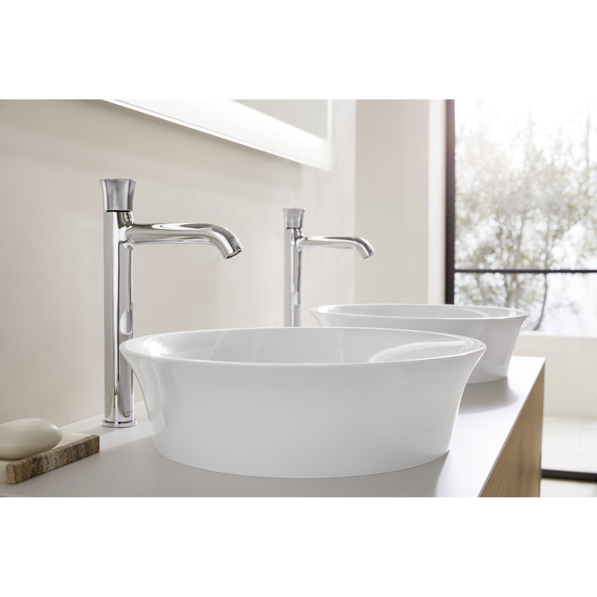 De Duravit White Tulip opzetwastafel is een elegante en moderne keuze voor jouw badkamer. Met een ronde vorm en een diameter van 43 cm straalt deze wastafel tijdloze verfijning uit. Gemaakt van hoogwaardig DuraCeram, biedt het een duurzame en onderhoudsvriendelijke oplossing die perfect is voor opbouw op een meubel of blad.Stijlvol en minimalistisch ontwerp Het ronde ontwerp met een glanzend witte afwerking voegt een verfijnde touch toe aan jouw badkamer. De onderzijde is geslepen voor een stevige plaatsing op een blad of meubel. Zonder overloop en kraangat behoudt de wastafel een strak en minimalistisch uiterlijk, wat ideaal is voor moderne interieurs.