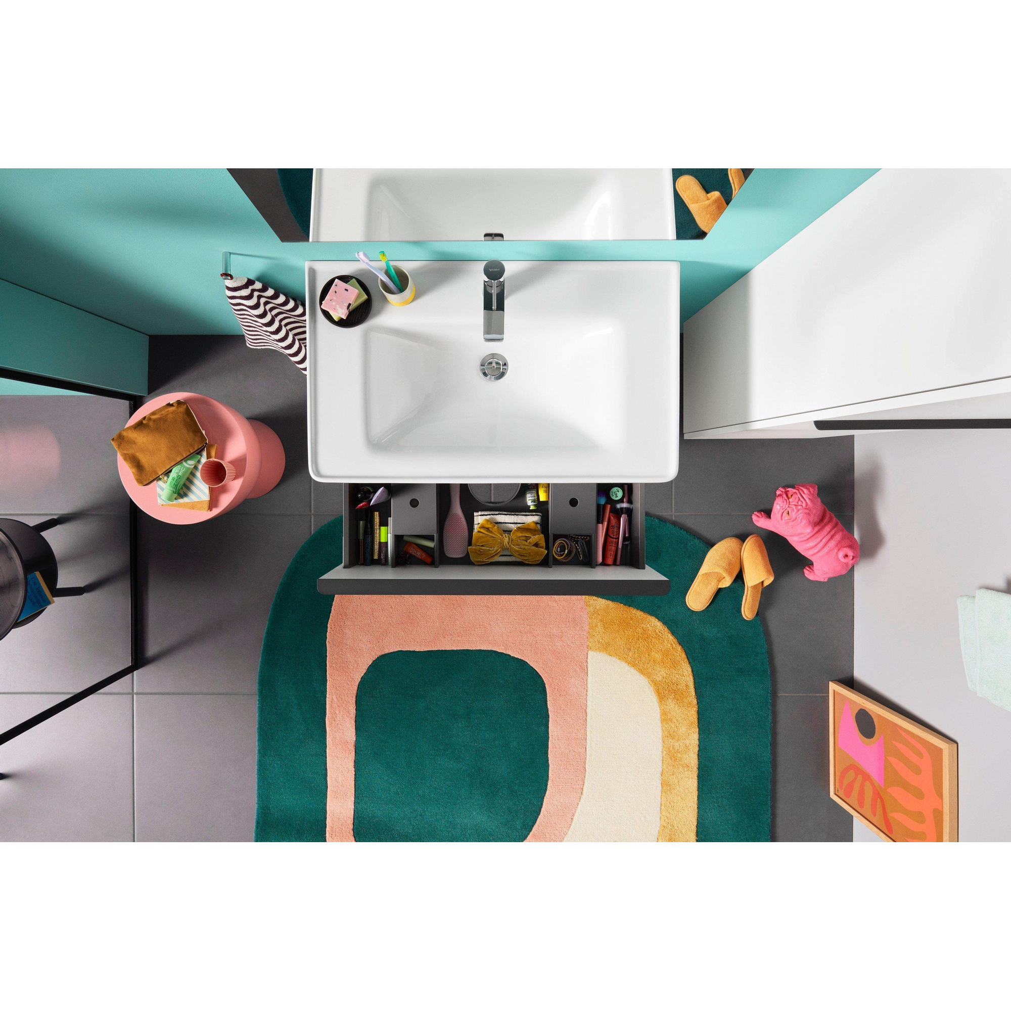 Niet alleen een visueel aantrekkelijk stuk, de Duravit D-Neo wastafel is ook zeer functioneel. Met een enkel kraangat is het gemakkelijk te gebruiken en biedt het voldoende ruimte voor dagelijks gebruik. De duurzame keramische constructie zorgt voor langdurige prestaties en eenvoudig onderhoud, waardoor het een praktische keuze is voor elke badkamer.