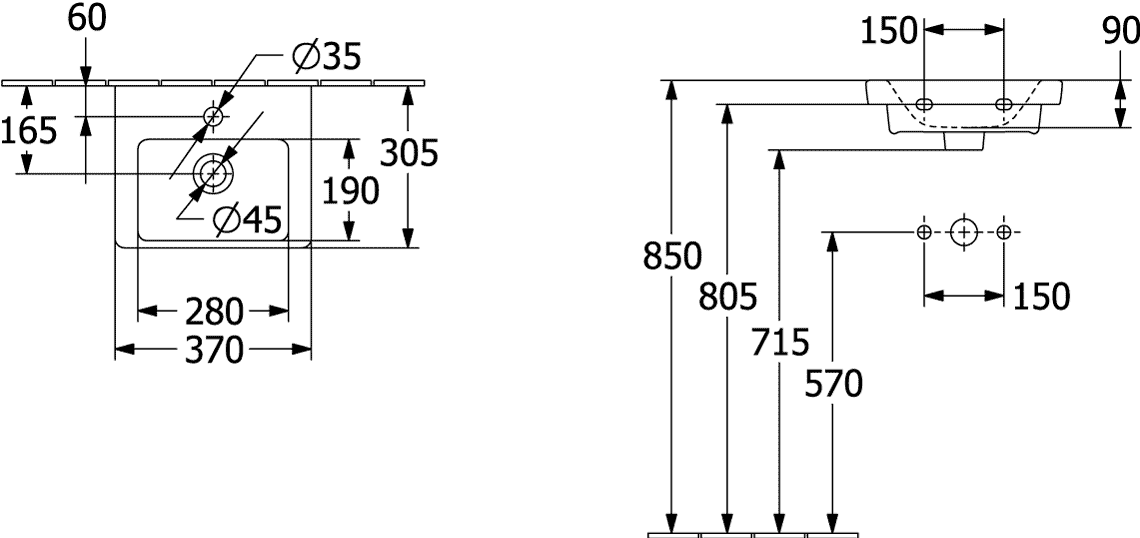 Villeroy & Boch Subway 3.0 fontein 37x305cm 1 kraangat met overloop C+ stone white