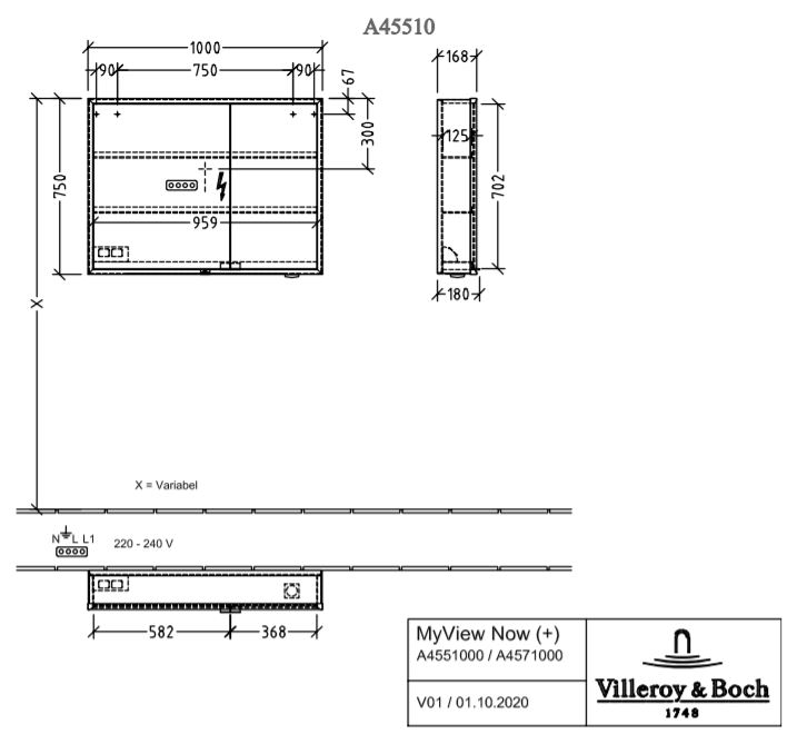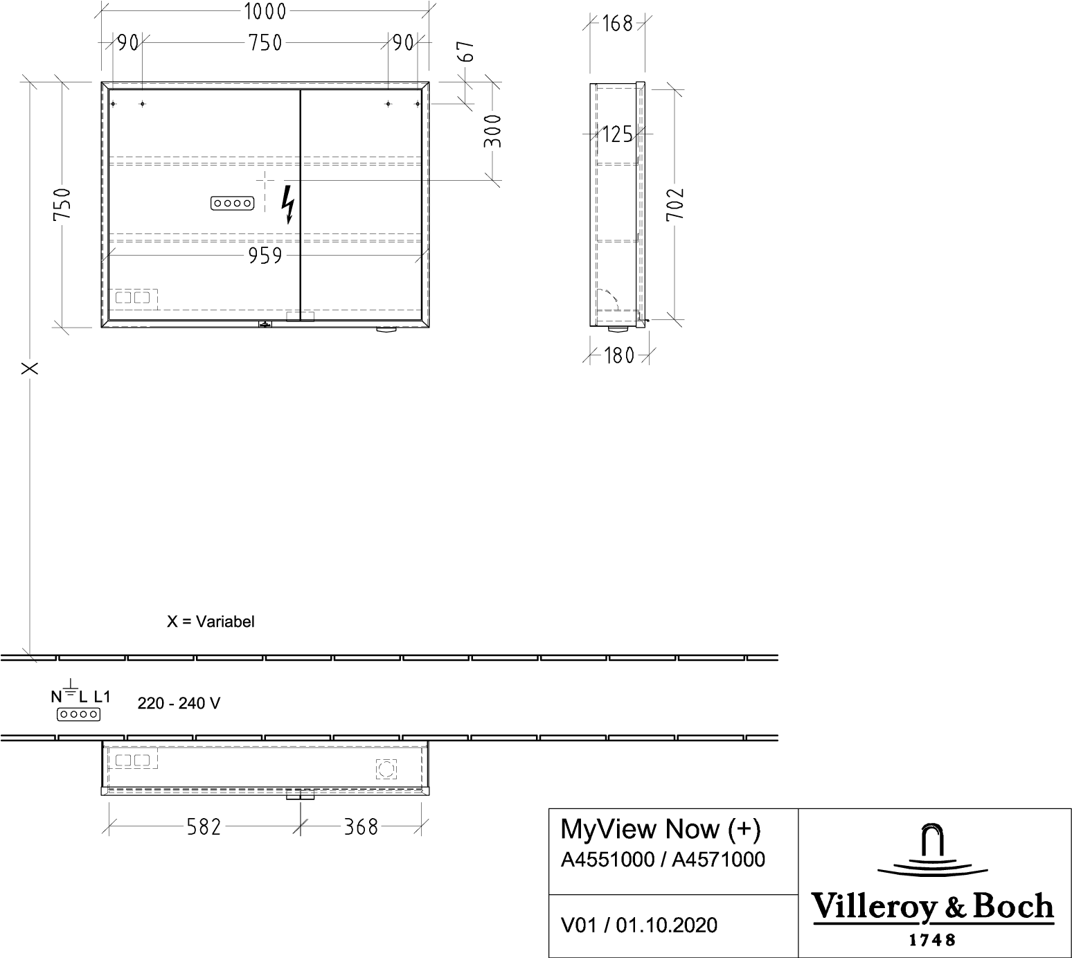 Villeroy & Boch My view spiegelkast 100x75cm 2 deuren 3 contactdoos LED