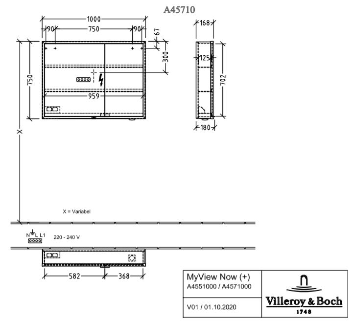 Villeroy & Boch My view spiegelkast 100x75cm 2 deuren 2 contactdoos LED