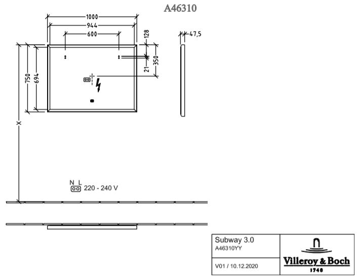 Villeroy & Boch Subway 3.0 spiegel 100x75cm LED licht rondom