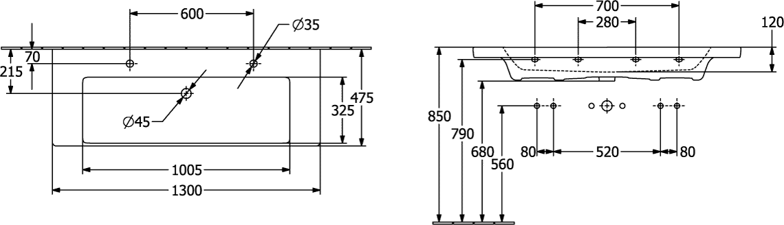 Villeroy & Boch Subway 3.0 meubelwastafel 130x47cm 2 kraangat met overloop wit